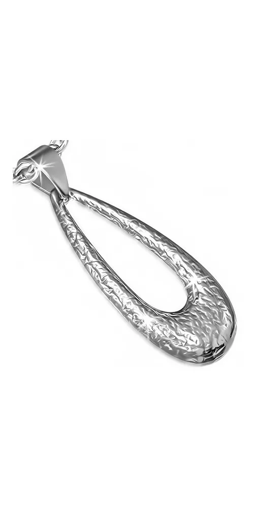 Zaujímavý prívesok v tvare kvapky je vyrobený z chirurgickej ocele v lesklej povrchovej úprave striebornej farby s gravírovaním. K tomuto prívesku môžete použiť retiazku s priemerom 7,5 mm.