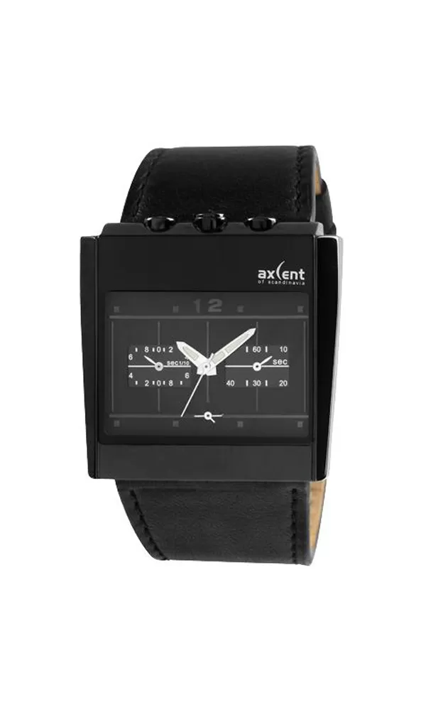 Unisex hodinky Axcent of Scandinavia s kvalitným koženým pásikom v čiernej farbe a čiernym ciferníkom. Kvalitu pásky je možné ohodnotiť už iba pohľadom. Kvalitne prešité okraje, silná kvalitná koža - to sú prednosti pre dlhú životnosť každého koženého opasku. Ciferník vás zaujme svojím nevšedným vzhľadom, kedy sú vo vnútri veľkého hranatého ciferníka dva menšie ciferníky s funkciou stopiek. Ručičky hodiniek sú navyše luminiscentné, takže na čas uvidíte aj pri zníženej viditeľnosti.