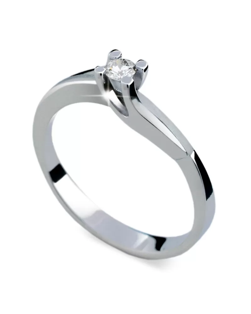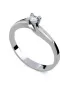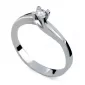 Zásnubný prsteň vyrobený z bieleho štrnásťkarátového zlata rýdzosti 585/1000 v lesklej povrchovej úprave s jedným okrúhlym zirkónom vsadeným do moderne spracovaného štvorkrapňového uchytenia. Prsteň je skladom aj v žltom zlate.