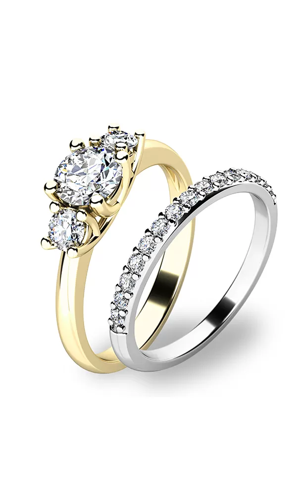 Krásný set prstenů 10803 a 10845 vás i vaše okolí zaujme na první pohled. Prsteny jsou vyrobené ze čtrnácti karátového žlutého a bílého zlata o… Celý popis