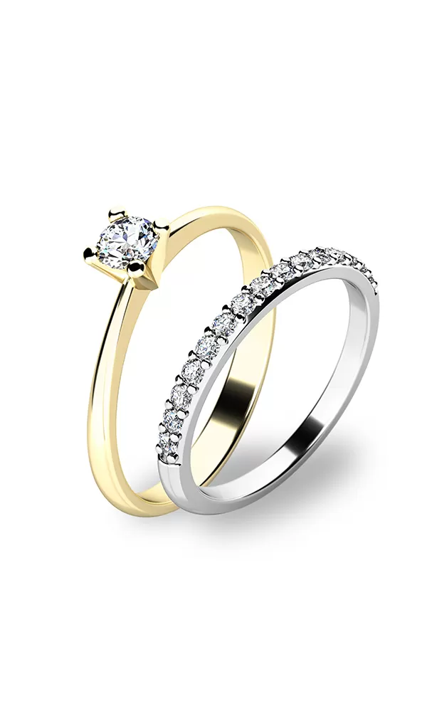 Krásný set prstenů 10820 a 10845 vás okouzlí na první pohled. Prsteny jsou vyrobené ze čtrnácti karátového žlutého a bílého zlata o ryzosti 585/1000… Celý popis