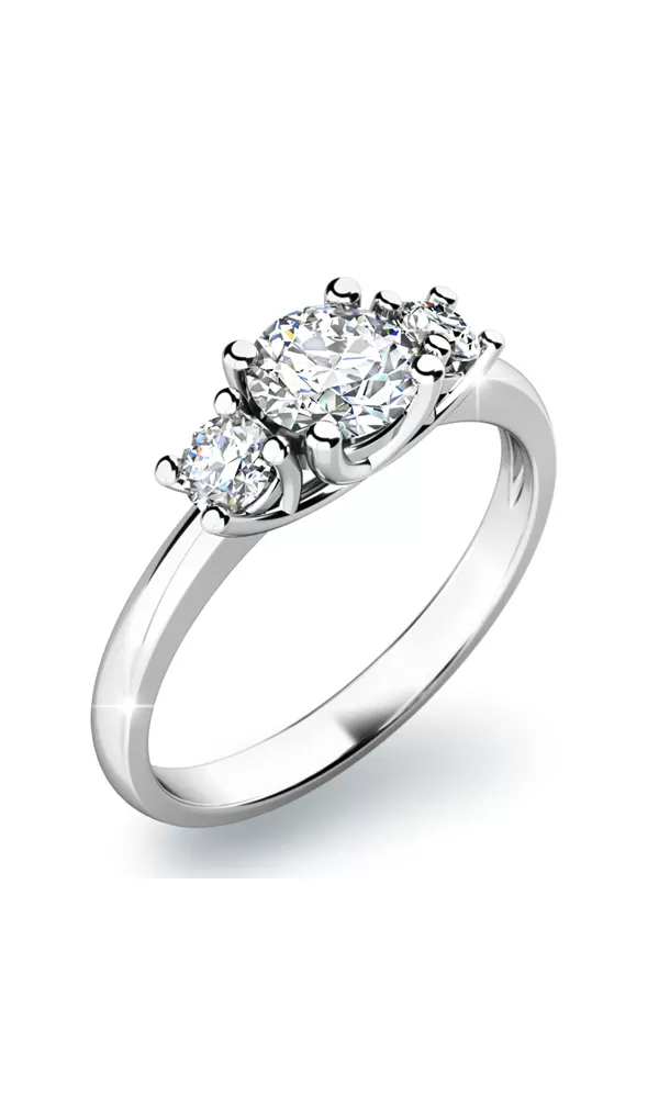 Zásnubný prsteň vyrobený z bieleho štrnásťkarátového zlata - 585/1000 v lesklej povrchovej úprave. Nádherný zásnubný prsteň žiari mimoriadnym leskom a to vďaka trom zirkónom briliantového brusu. Zirkóny sú dvoch veľkostí. Uprostred dominuje veľký zirkón a strážia ho dva menšie zirkóny. Všetky zirkóny držia silné uchytenie, ktoré je nádherne prepracované aj pri bočnom pohľade. Všetky zirkóny majú briliantový brus Signity star, ktorý zaisťuje maximálnu brilanciu kameňov. Vďaka skladbe a štýlovo čistému vsadeniu zirkónov, prsteň vyniká krásnou brilanciou kameňov. Vsadzovanie zirkónov do zásnubných prsteňov vykonávajú naši najskúsenejší majstri zlatníci ručne pod mikroskopom s presnosťou na 0,01 mm a preto nehrozí vypadnutie kamienkov ako to býva u strojne vyrábaných zásnubných prsteňov. Elegantná jednoduchá obrúčka podčiarkuje krásu a ladnosť prsteňa.