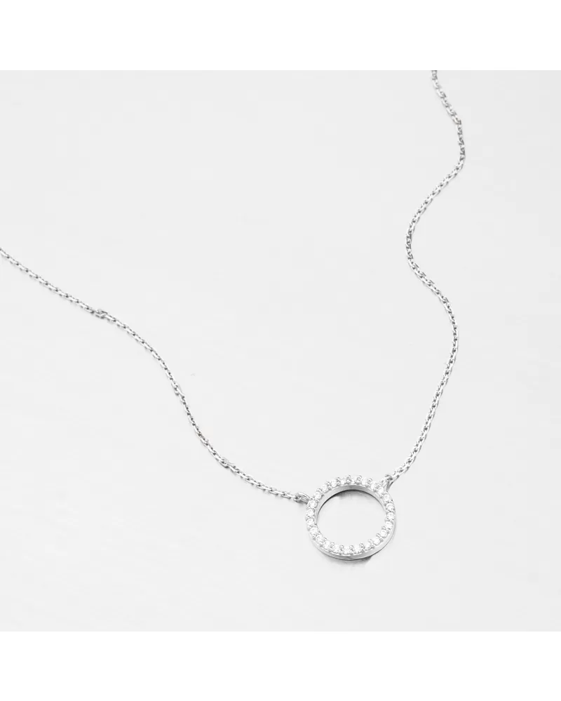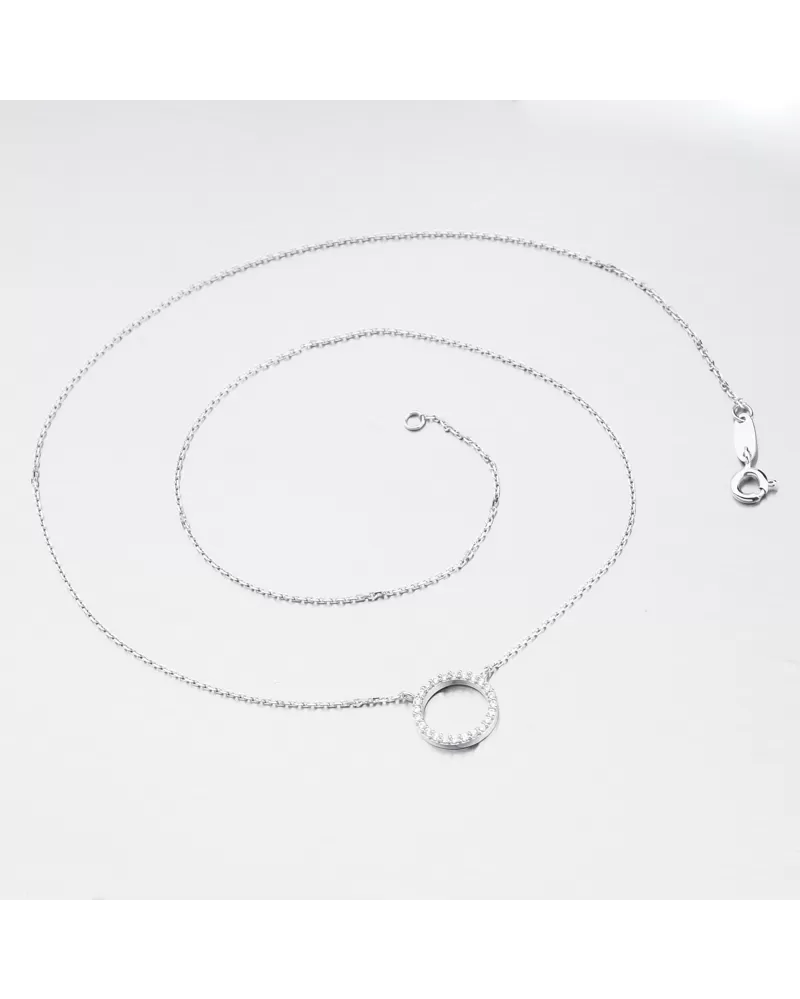 Náhrdelník tvorí spoľahlivá kotviaca retiazka, ktorá pevne drží prívesok v tvare kruhu. Prívesok zdobí osadenie zirkónom vo vysokom lesku. Zirkóny sú precízne osadené vedľa seba s dokonalou presnosťou. Starostlivý briliantový výbrus dodáva zirkónom iskru skutočných diamantov.
