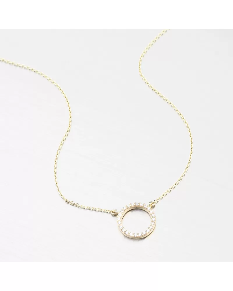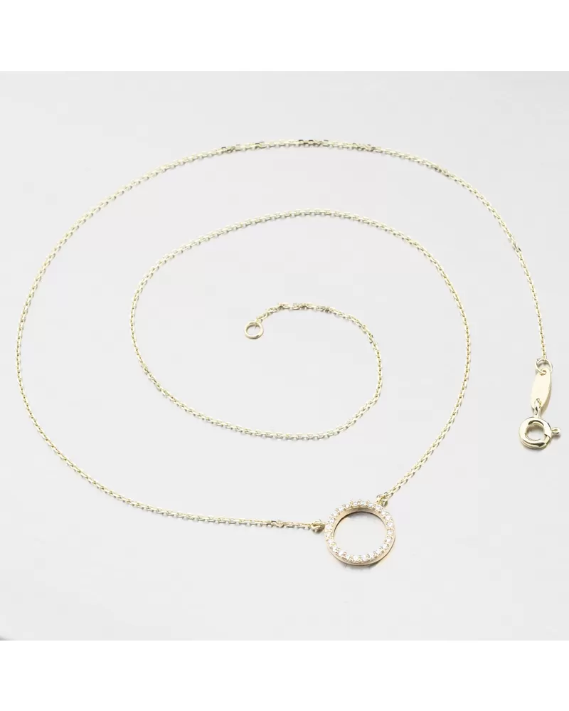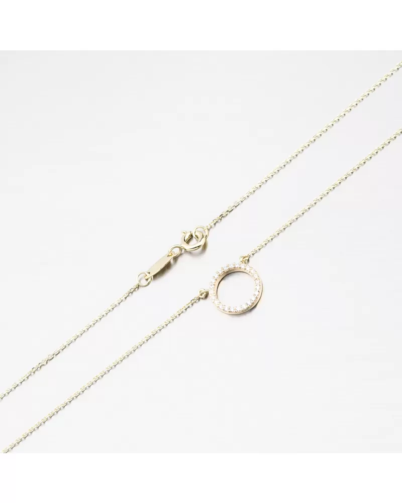Zlatý náhrdelník kruh so zirkónmi - symbol elegancie a nekonečna. Jemnosť, ktorá upúta na prvý pohľad. Tento zlatý náhrdelník s motívom kruhu predstavuje dokonalosť, jednotu a nekonečno - hodnoty, ktoré nikdy nevyjdú z módy. Zdobia ho precízne vybrúsené zirkóny, ktoré sa pri každom pohybe trblietajú a dodávajú kúsku luxusný vzhľad.