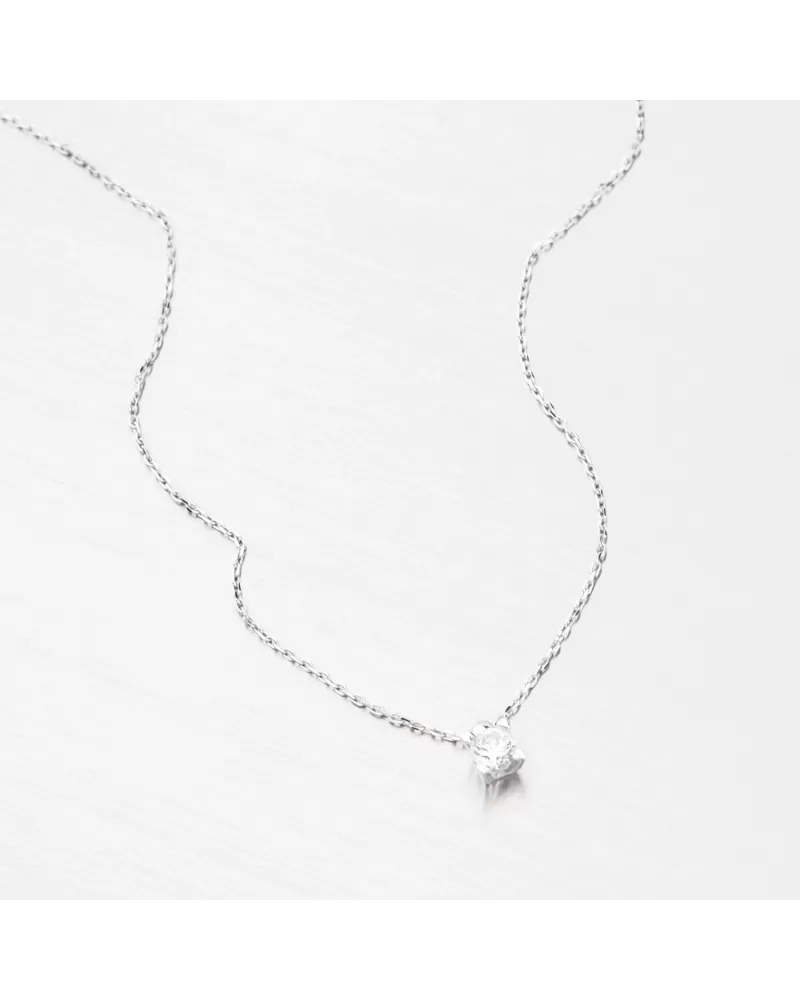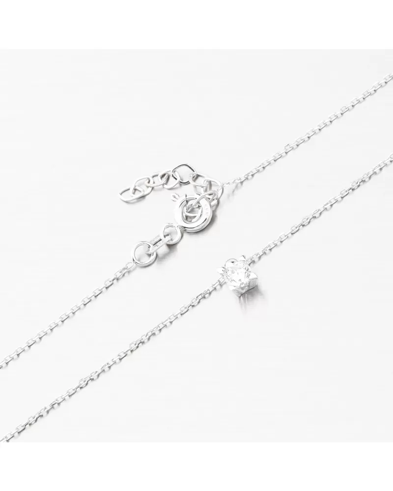 Tu rozhodne platí citát: "V jednoduchosti je krása". Náhrdelník je tvorený retiazkou typu anker a na nej je krásny jednoduchý prívesok osadený žiarivým zirkónom, ktorý je upevnený pomocou štyroch krpien. Zirkón je briliantového brusu, ktorý prepožičiava zirkónu brilanciu pravého diamantu.