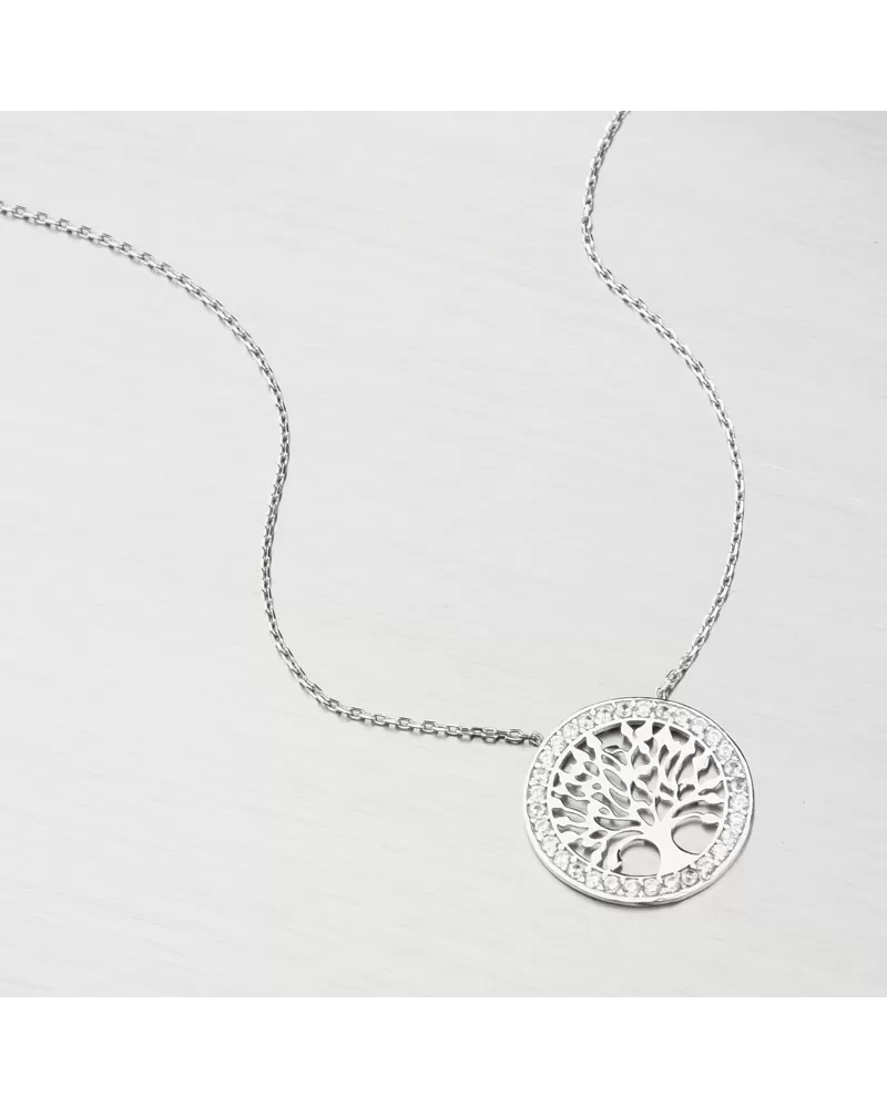 Náhrdelník z bieleho zlata strom života so zirkónmi 55GZ-5021-B