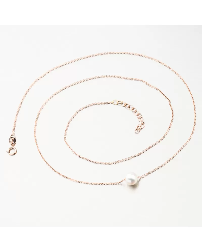 Zlatý náhrdelník, ktorý zapôsobí svojou jemnosťou a eleganciou. Náhrdelník pozostáva z reťazca typu ankeru a na ňom je jedna biela sladkovodná perla, cez ktorú reťaz prechádza. Určite potešíte milovaného človeka s týmto náhrdelníkom.