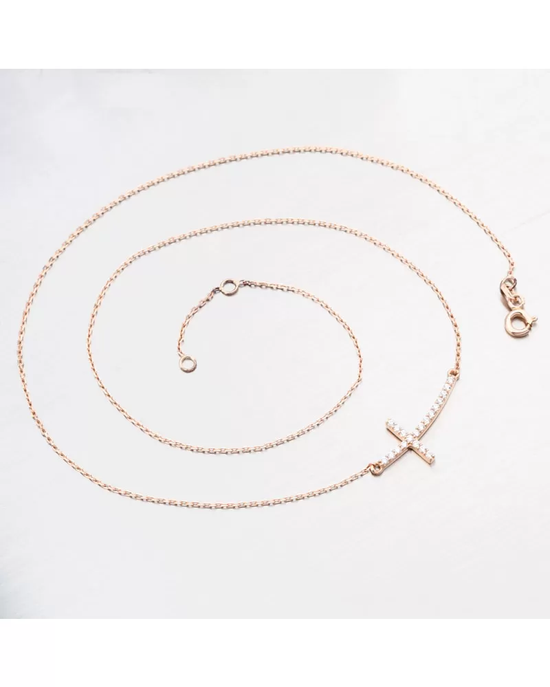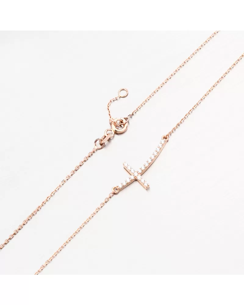 Zlatý náhrdelník, ktorý zapôsobí svojou jemnosťou a jednoduchosťou. Náhrdelník pozostáva z reťazca typu ankeru a na ňom je krásny prívesok v tvare kríža. Kríž je vybavený jasnými zirkónmi. Zirkóny sú brilantné brúsenie, ktoré zabezpečujú maximálnu brilanciu leštených aspektov, dokonale odrážajú svetlo a neuveriteľne svieti zo všetkých pohľadov.
