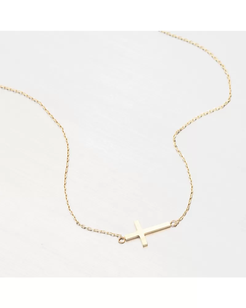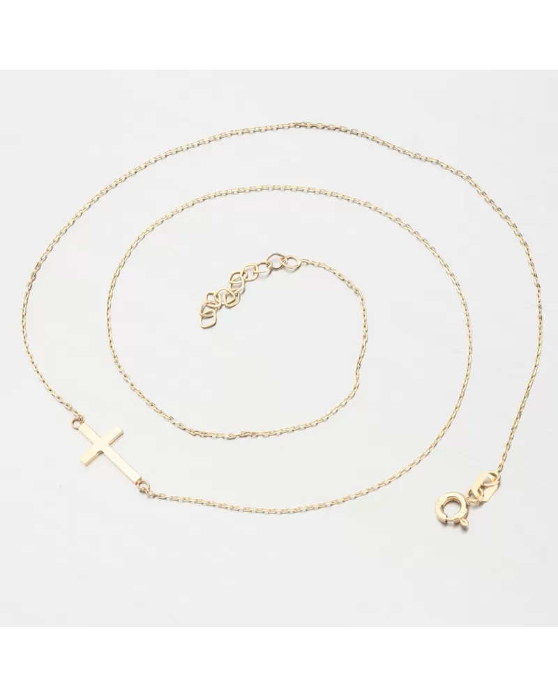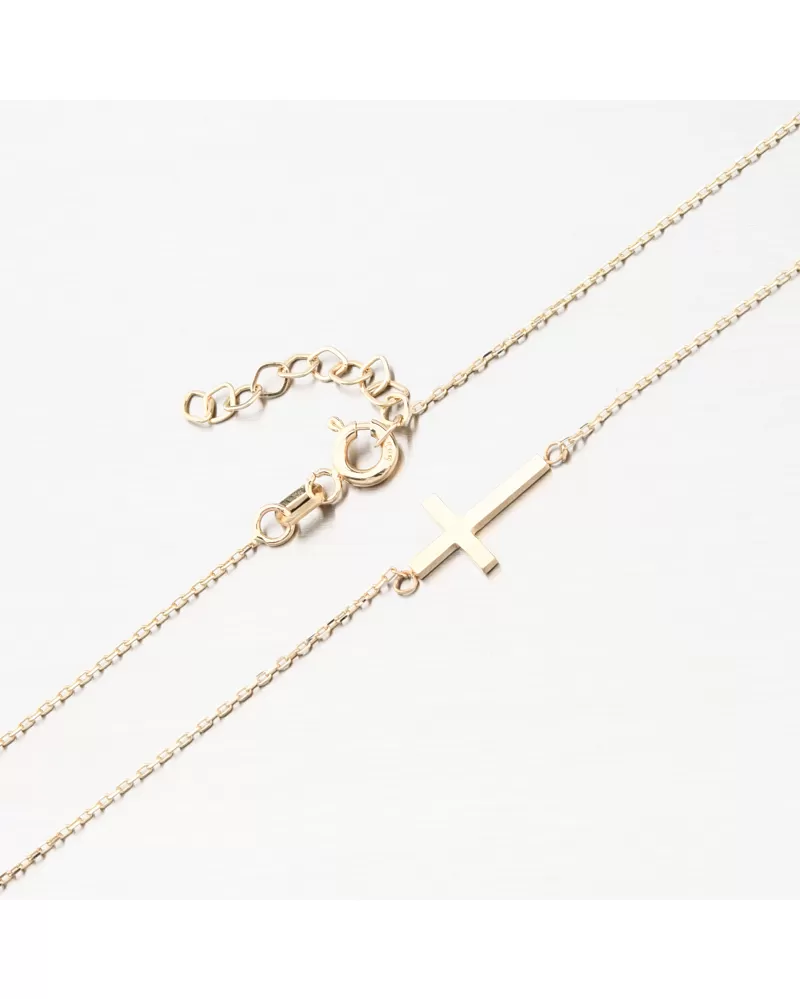 Zlatý náhrdelník, ktorý zaujme svojou jemnosťou a jednoduchosťou. Náhrdelník je tvorený retiazkou typu anker a na nej je krásny prívesok v tvare kríža. Krížik je vo vysokom lesku.