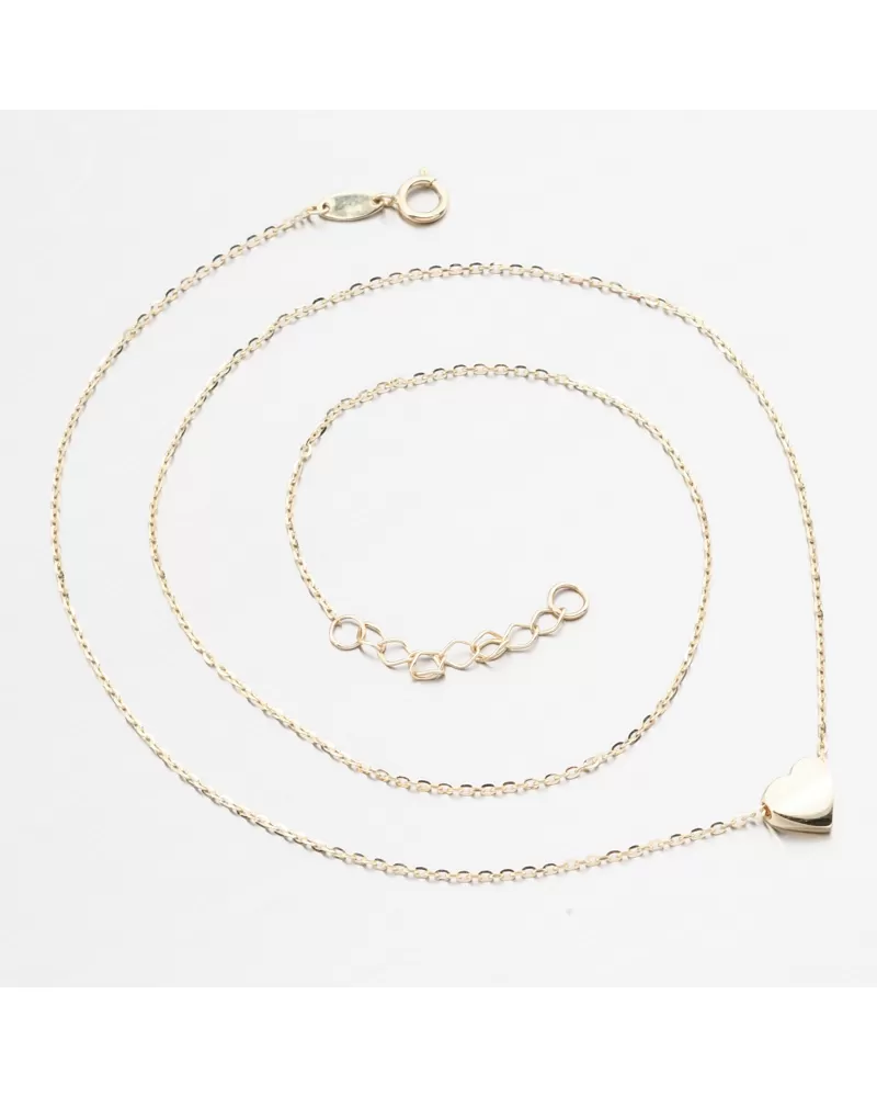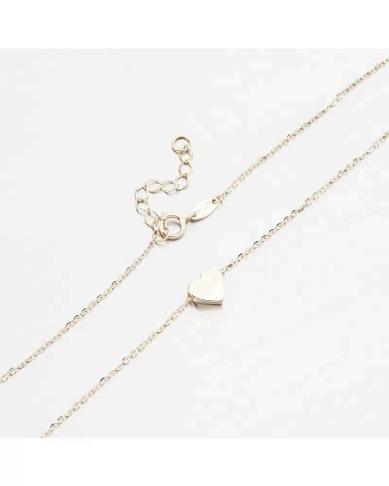 Zlatý náhrdelník, ktorý zapôsobí svojou jemnosťou a jednoduchosťou. Náhrdelník pozostáva z reťazca typu Anker, ktorý je zdobený žiarivými aspektmi. Medzi aspekty vyrábajú diamantový nástroj, ktorý poskytuje výsledným aspektom maximálny lesk, vďaka čomu dokonale odráža svetlo a má krásnu brilanciu zo všetkých uhlov. Cez reťaz je v tvare srdca krásny prívesok. Srdce je vo vysokom lesku. Určite potešíte milovaného človeka s týmto náhrdelníkom.