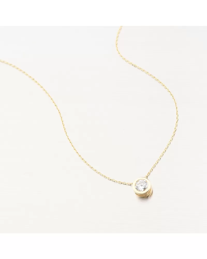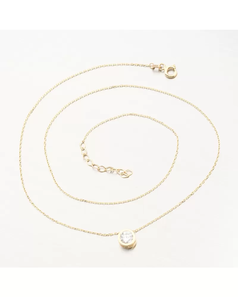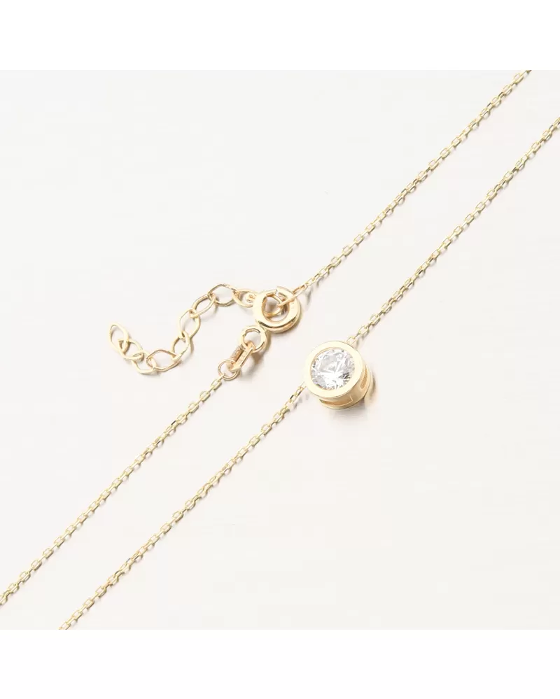 Zlatý náhrdelník, ktorý zaujme svojou jemnosťou a jednoduchosťou. Náhrdelník je tvorený retiazkou typu anker a na nej je krásny prívesok v okrúhlom tvare. Prívesok je vo vysokom lesku, zdobený bielym zirkónom v briliantovom bruse. Briliantový brús prepožičiava zirkónu brilanciu pravého diamantu. Týmto náhrdelníkom zaručene potešíte milovanú osobu.