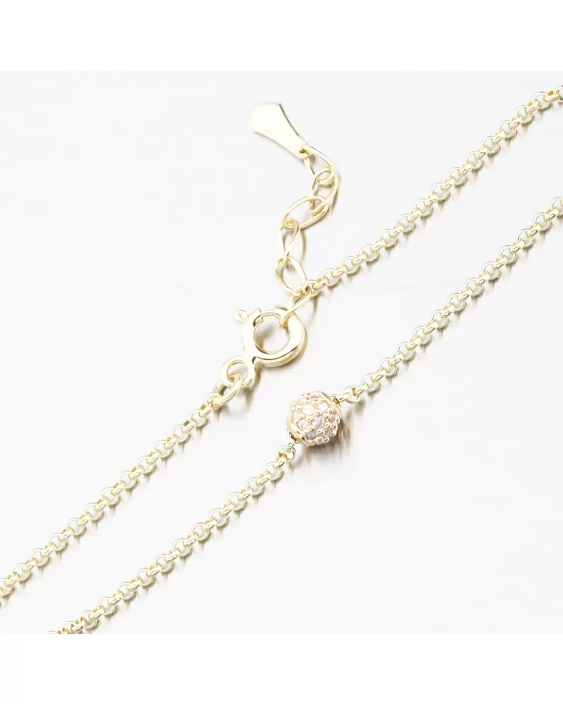 Krása je v detailoch. Tento zlatý hráškový náramok zdobí jedna malá gulička osádzaná brúsenými kubickými zirkónmi, ktoré dodávajú šperku romantický šmrnc. Zirkóny majú briliantový výbrus, ktorý zaisťuje maximálnu brilanciu brúsených faziet, dokonale odráža svetlo a neuveriteľne svieti z každého pohľadu.
