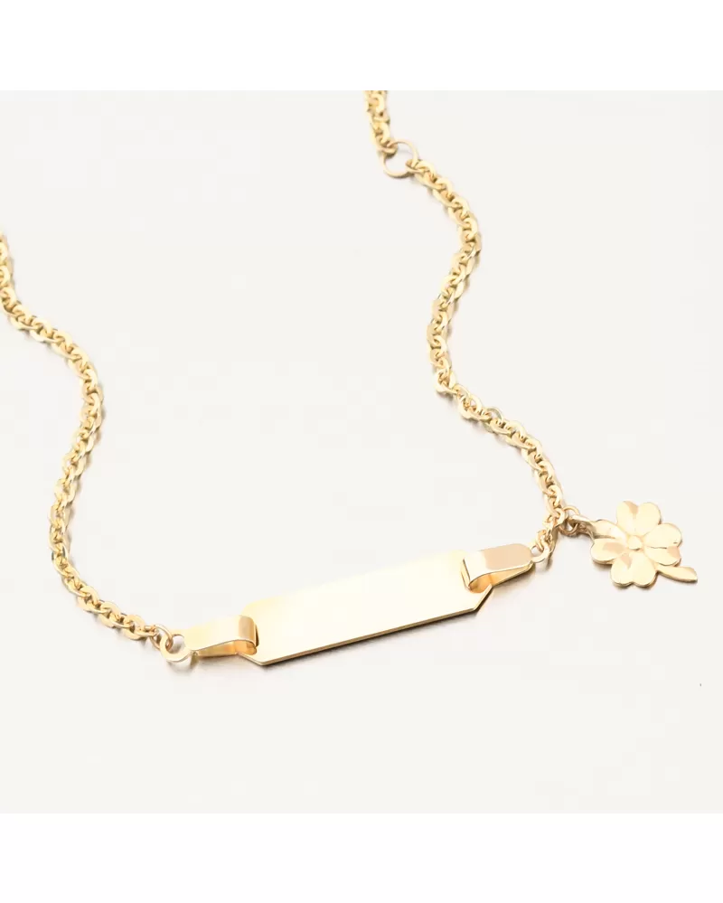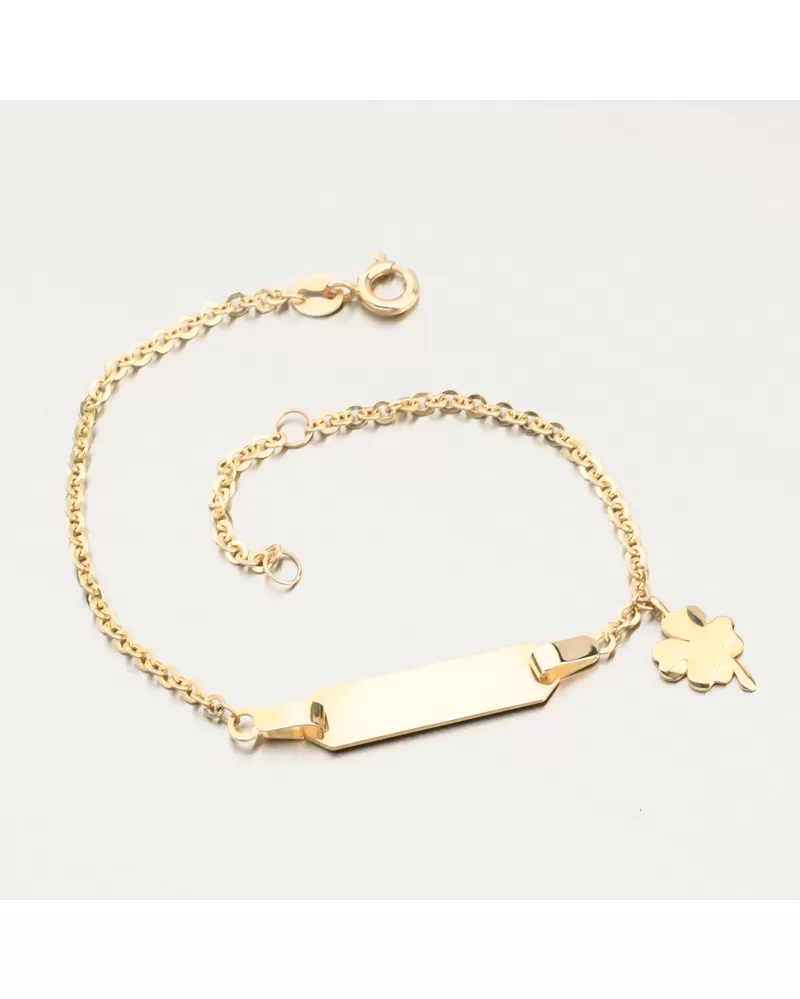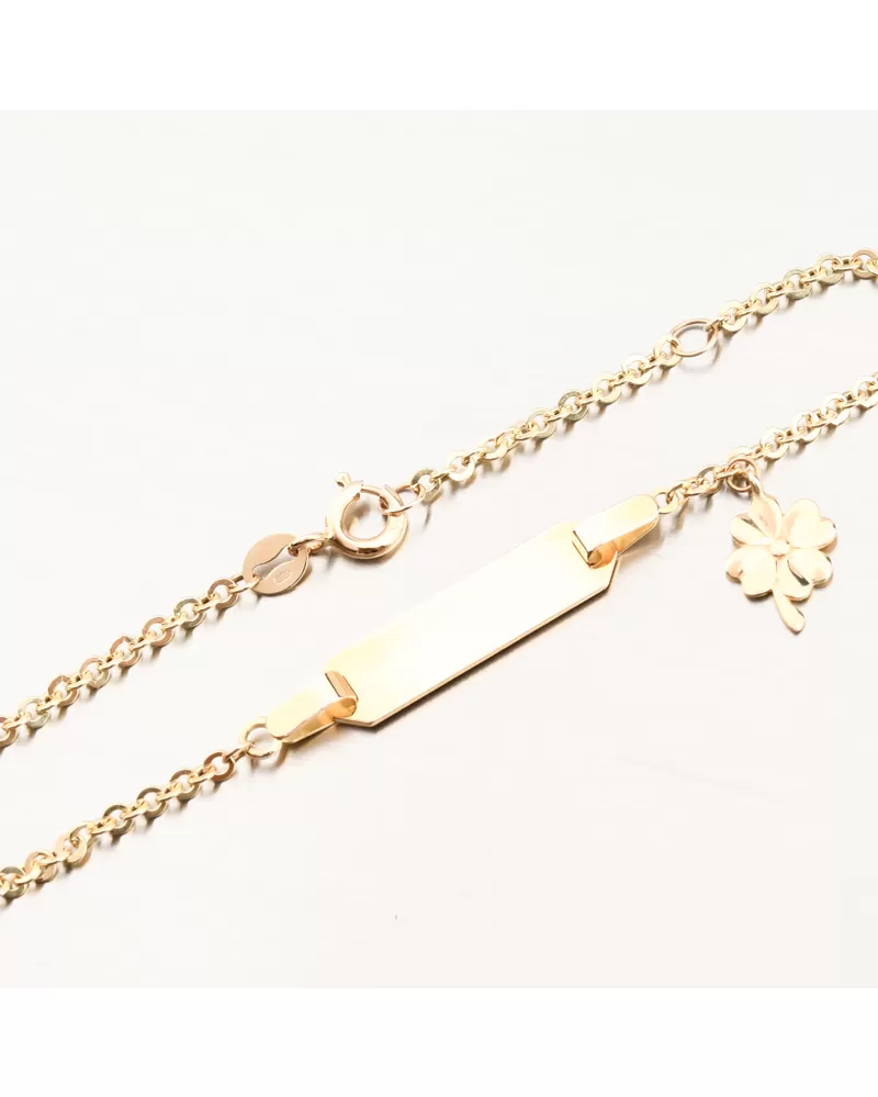 Detský náramok žlté zlato 585 s platničkou a štvorlístkom 144P-141312