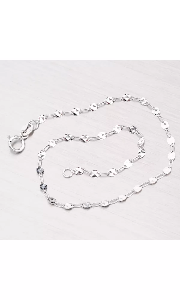 Elegantný náramok je vyrobený z bieleho štrnásťkarátového zlata 585/000 v lesklej povrchovej úprave so zapínaním na perový krúžok. Náramok je gravírovaný pomocou nástroja s diamantovým hrotom, ktorý dodáva šperku maximálny lesk, preto ho rozhodne neprehliadnete.