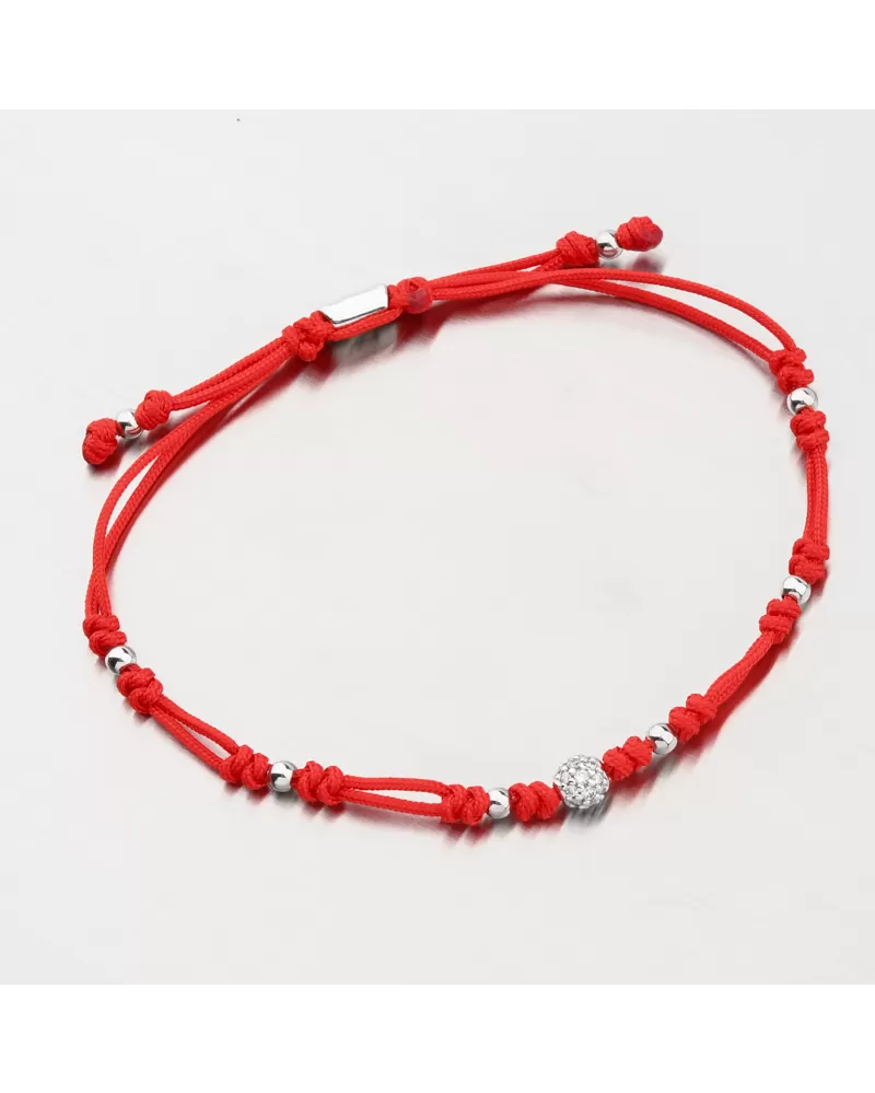 Náramok červený povrázkový s guličkou a so zirkónmi 74-5197B-CV