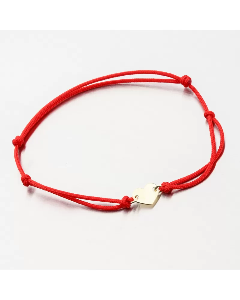 Veľmi obľúbený typ povrázkového náramku, ktorý má výhodu vo svojej univerzálnej veľkosti a obľúbenej červeno-zlatej kombinácii farieb. Náramok je tvorený z červeného dvojitého povrázku, ktorý je ozdobený príveskom v samotnom strede zo žltého zlata v tvare srdca.