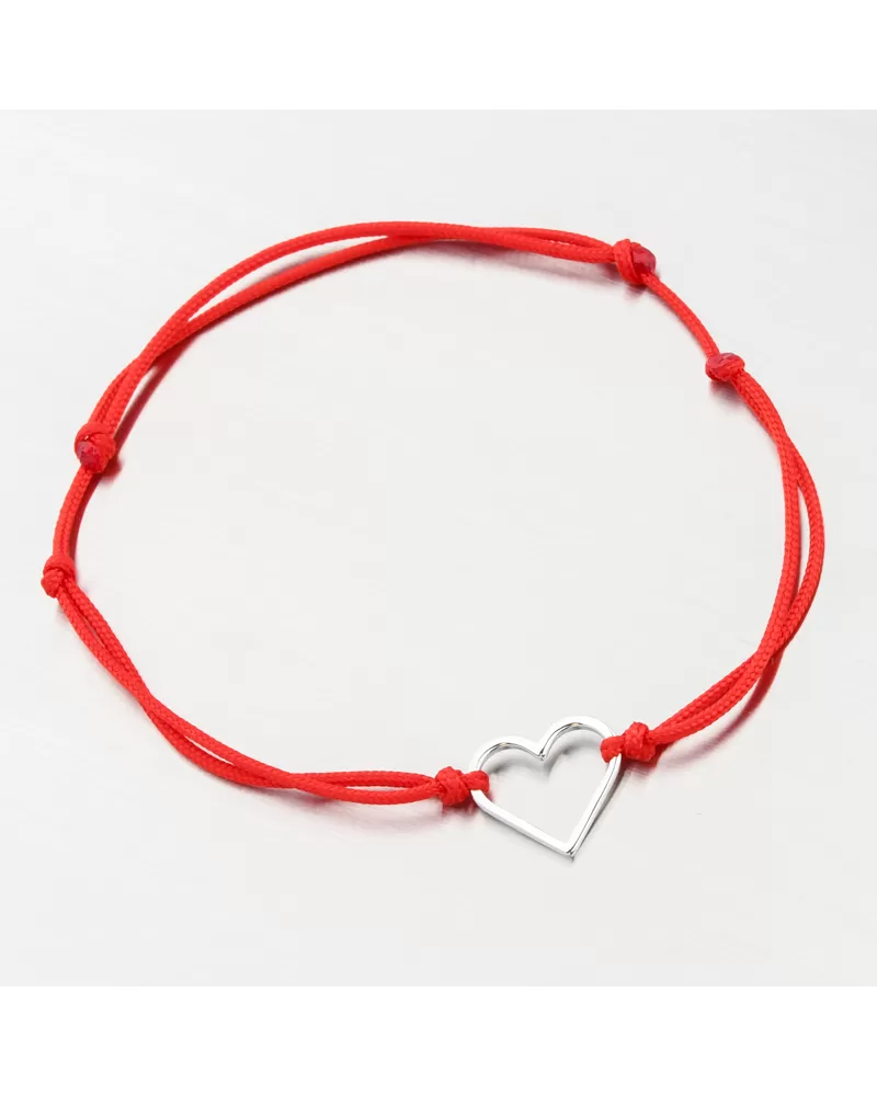 Veľmi obľúbený typ povrázkového náramku, ktorý má výhodu vo svojej univerzálnej veľkosti a obľúbenej červeno-bielej kombinácii farieb. Náramok je tvorený z červeného dvojitého povrázku, ktorý je ozdobený príveskom v samotnom strede z bieleho zlata v tvare srdca.