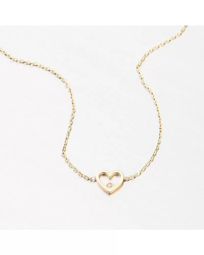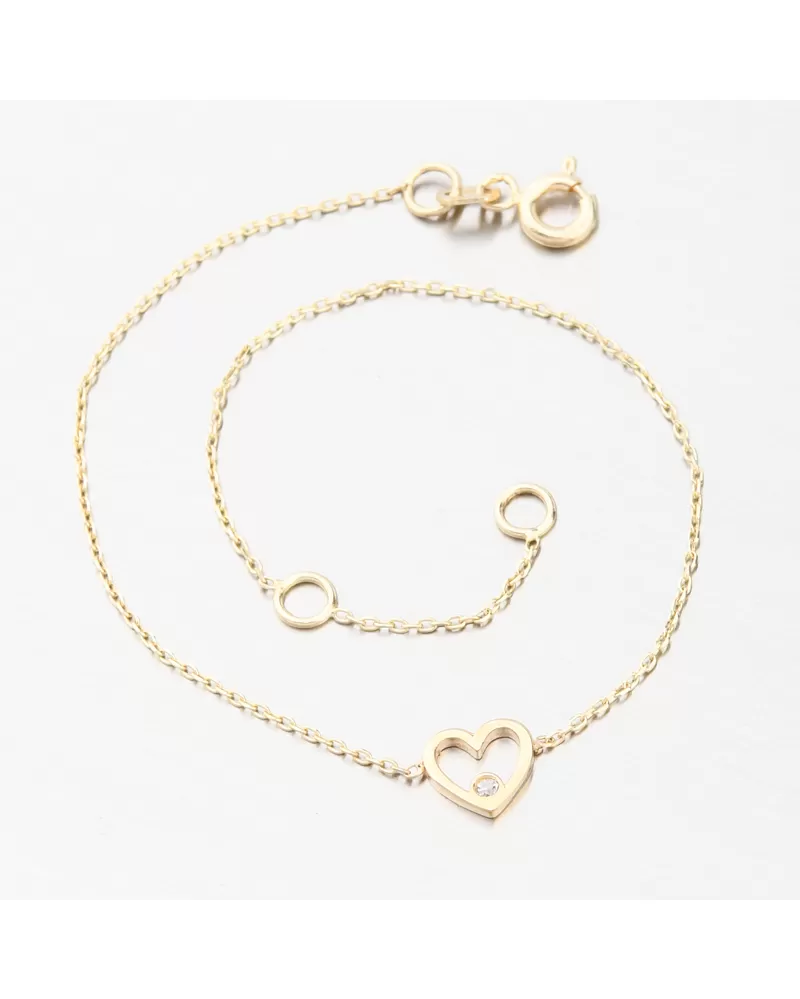Jemný zlatý náramok, ktorý má v strede roztomilé srdiečko a v ňom osadený jeden trblietavý zirkón. Zirkón má briliantový briliant Signity star, ktorý dodáva zirkónu maximálnu brilanciu.