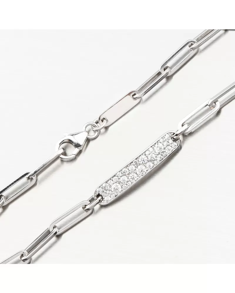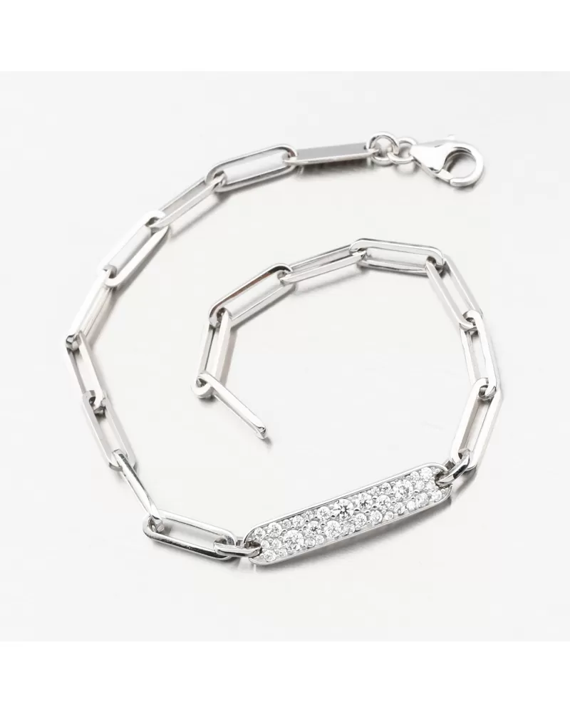 Investujte do luxusného šperku najvyššej kvality. Dámsky náramok pozostáva z väčších stehov, zdobených presne zasadenými zirkónmi v brilantnom strihu. Brilantný strih dáva zirkónom trblietky skutočných diamantov. Dĺžka náramku je 17 cm, ale s použitím 3 cm dlhého reťazca je možné voľne zapnúť náramok v dĺžke 17 až 20 cm. Nastaviteľná dĺžka má úžasnú výhodu v tom, že nemusíte poznať presnú veľkosť a darovaná osoba prispôsobuje samotnú dĺžku. Pripevnenie je na pevnom karabíne.