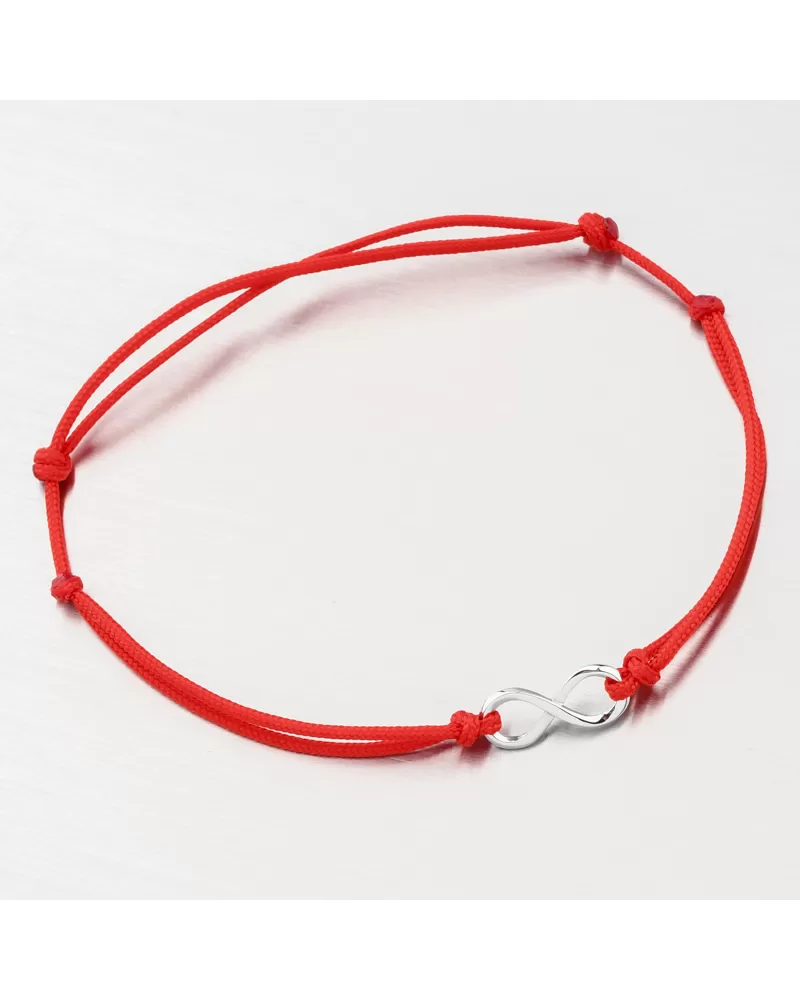 Veľmi obľúbený typ povrázkového náramku, ktorý má výhodu vo svojej univerzálnej veľkosti a obľúbenej červeno-bielej kombinácii farieb. Náramok je tvorený z červeného dvojitého povrázku, ktorý je ozdobený príveskom v samotnom strede z bieleho zlata v tvare nekonečna.