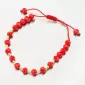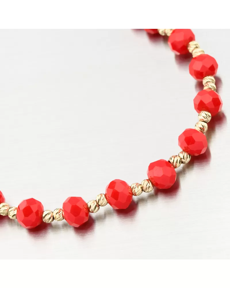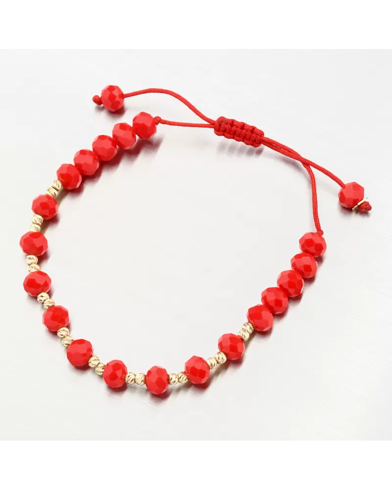 Veľmi obľúbený typ špagátového náramku, ktorý má výhodu vo svojej univerzálnej veľkosti a obľúbenej červeno-zlatej kombinácii farieb. . Zlaté guličky sú zdobené facetami, ktoré sú zhotovené diamantovým nástrojom, ktorý dodáva vzniknutým facetám maximálny lesk, vďaka ktorému dokonale odráža svetlo a majú krásnu brilanciu zo všetkých uhlov pohľadu!