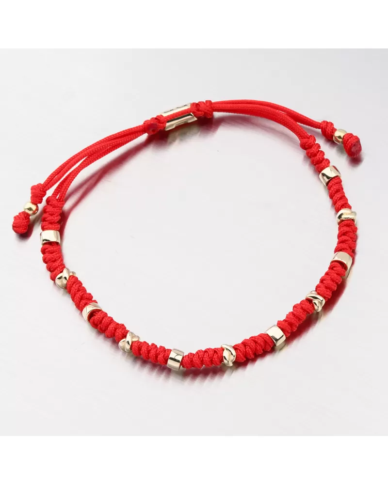 Veľmi populárny typ náramku struny, ktorý má výhodu vo svojej univerzálnej veľkosti a populárnej červeno-žltej kombinácii farieb. Náramok pozostáva z čiernej dvojitého struna, ktorý je zdobený striedajúcimi sa zlatými valcami s vysokým leskom.