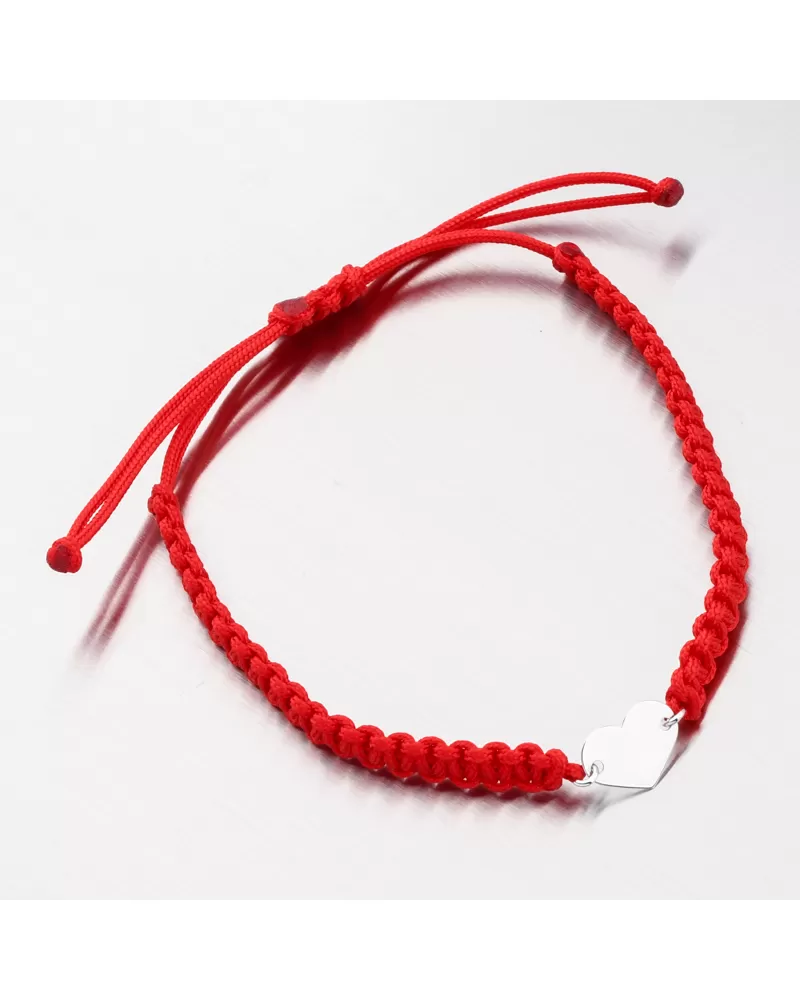 Veľmi populárny typ náramku struny, ktorý má výhodu vo svojej univerzálnej veľkosti a populárnej červeno-bielej kombinácii farieb. Náramok pozostáva z červenej dvojitého struna, ktorý je zdobený príveskom v strede bieleho zlata v tvare srdca.