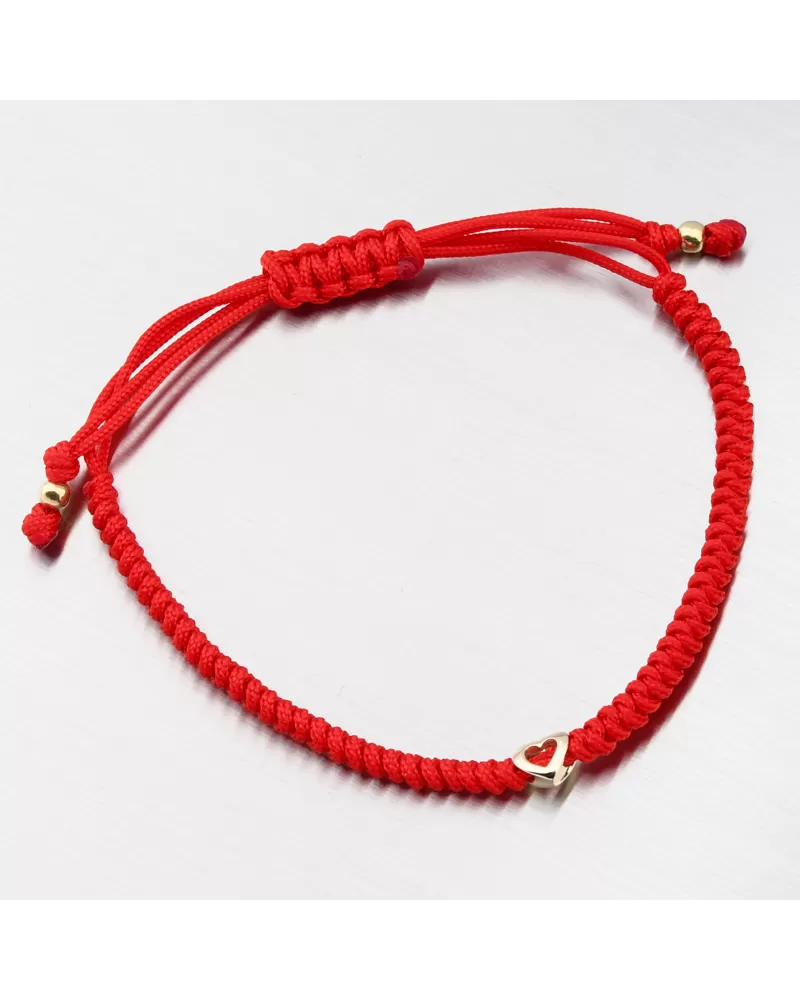 Veľmi populárny typ náramku struny, ktorý má výhodu vo svojej univerzálnej veľkosti a populárnej červeno-žltej kombinácii farieb. Náramok sa skladá z červenej dvojitej šnúry, ktorá je zdobená príveskom v strede žltého zlata v tvare srdca.