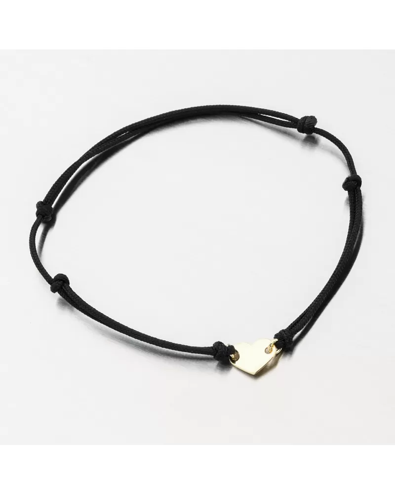 Veľmi obľúbený typ povrázkového náramku, ktorý má výhodu vo svojej univerzálnej veľkosti a obľúbenej čierno-zlatej kombinácii farieb. Náramok je tvorený z čierneho dvojitého povrázku, ktorý je ozdobený príveskom v samotnom strede zo žltého zlata v tvare srdca.