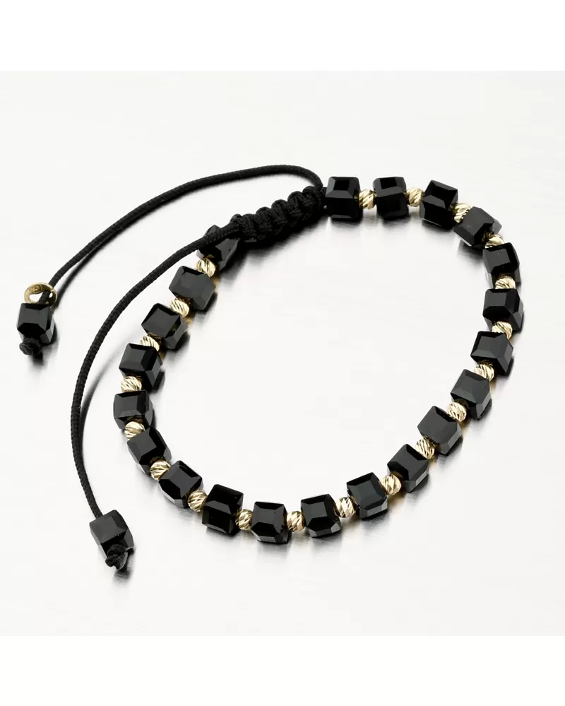 Veľmi obľúbený typ šnúrkového náramku, ktorý má výhodu vo svojej univerzálnej veľkosti a obľúbenej čierno-zlatej kombinácii farieb. Zlaté guličky sú zdobené facetami, ktoré sú zhotovené diamantovým nástrojom, ktorý dodáva vzniknutým facetám maximálny lesk, vďaka ktorému dokonale odráža svetlo a majú krásnu brilanciu zo všetkých uhlov pohľadu!