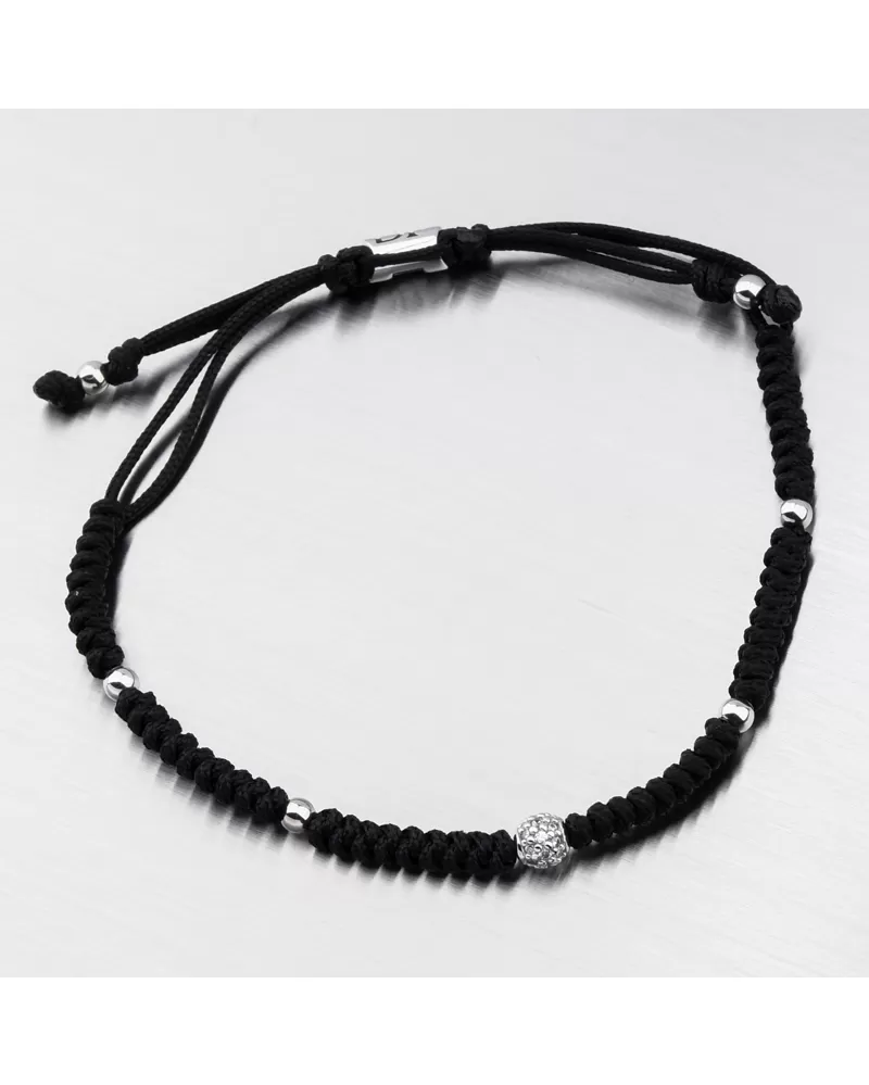 Veľmi populárny typ náramku struny, ktorý má výhodu vo svojej univerzálnej veľkosti a populárnej čiernobielej kombinácii farieb. Náramok pozostáva z čiernej dvojitého struna, ktorý je zdobený zlatými malými guľkami vo vysokom lesku a príveskom v strede bieleho zlata v tvare gule. Na všetkých stranách je namontovaný brilantnými mlyncovými zirkónmi, čo zaisťuje maximálnu brilanciu leštenej aspektu, dokonale odráža svetlo a neuveriteľne svieti zo všetkých pohľadov.