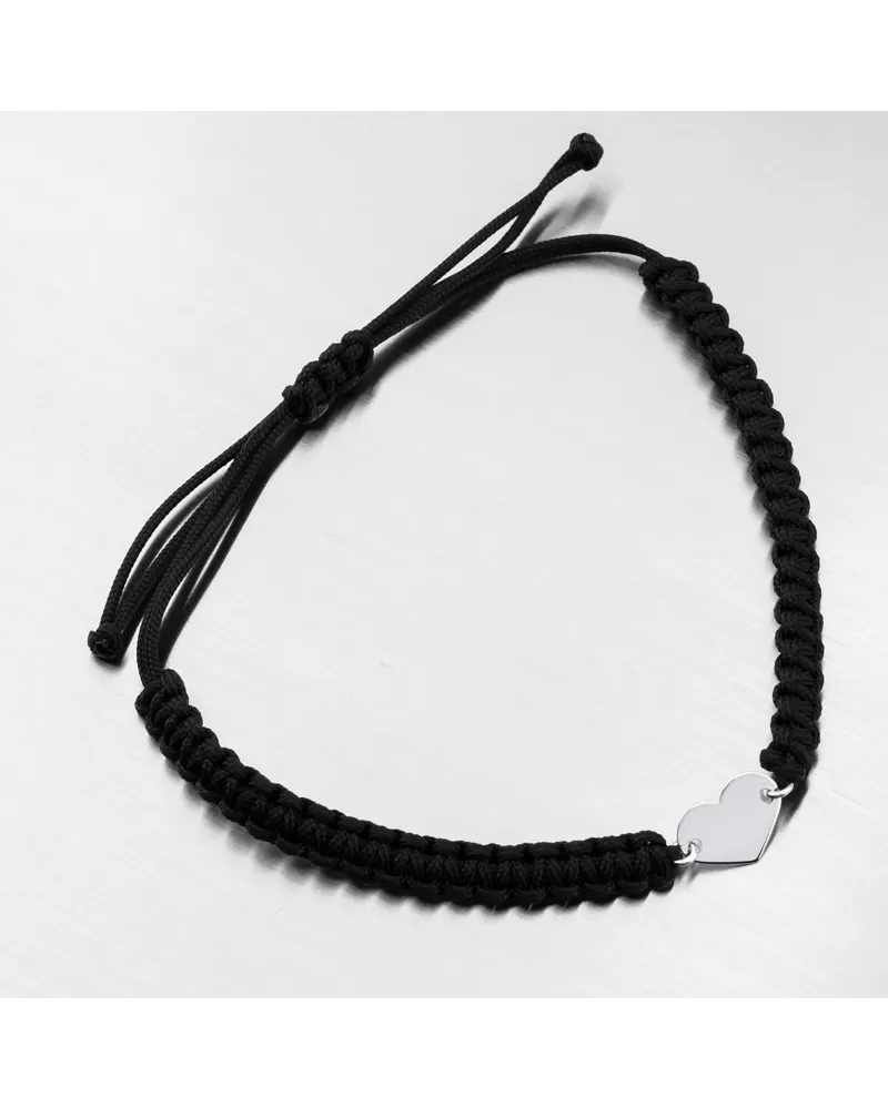 Veľmi populárny typ náramku struny, ktorý má výhodu vo svojej univerzálnej veľkosti a populárnej čiernobielej kombinácii farieb. Náramok sa skladá z čiernej dvojitého struna, ktorý je zdobený príveskom v samom strede bieleho zlata v tvare srdca. Prívesok môže zostať z prednej alebo zadnej časti rytiny. Napr. Meno, dátum, odhodlanie. Prívesok na rytie sa hodí ako perfektný darček pre vášho milovaného. Zadajte podrobnosti do poľa „Gravírovanie“.