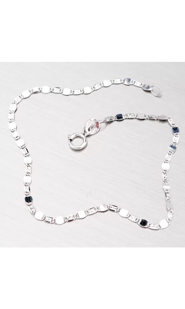 Elegantní náramek s gravírovanými facetami je vyrobený z bílého čtrnáctikarátového zlata 585/000 v lesklé povrchové úpravě se zapínáním na pérový kroužek. Facety jsou gravírované diamantovým hrotem, který dodává šperku maximální lesk.