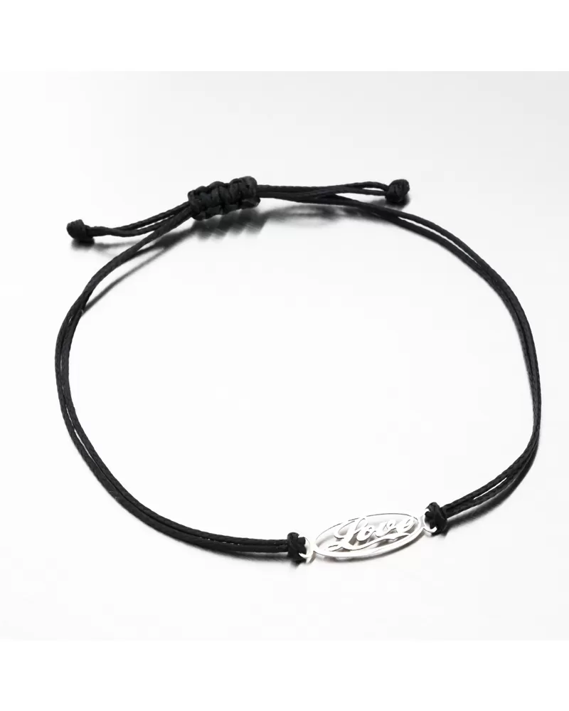 Veľmi obľúbený typ povrázkového náramku, ktorý má výhodu vo svojej univerzálnej veľkosti a tiež vhodnosti pre obe pohlavia. Náramok je tvorený z čierneho dvojitého povrázku, ktorý je ozdobený vo svojom strede nápisom Love z bieleho zlata. Tento nápis znamená láska a bude tak ideálnym darčekom pre Vašu drahú polovičku.