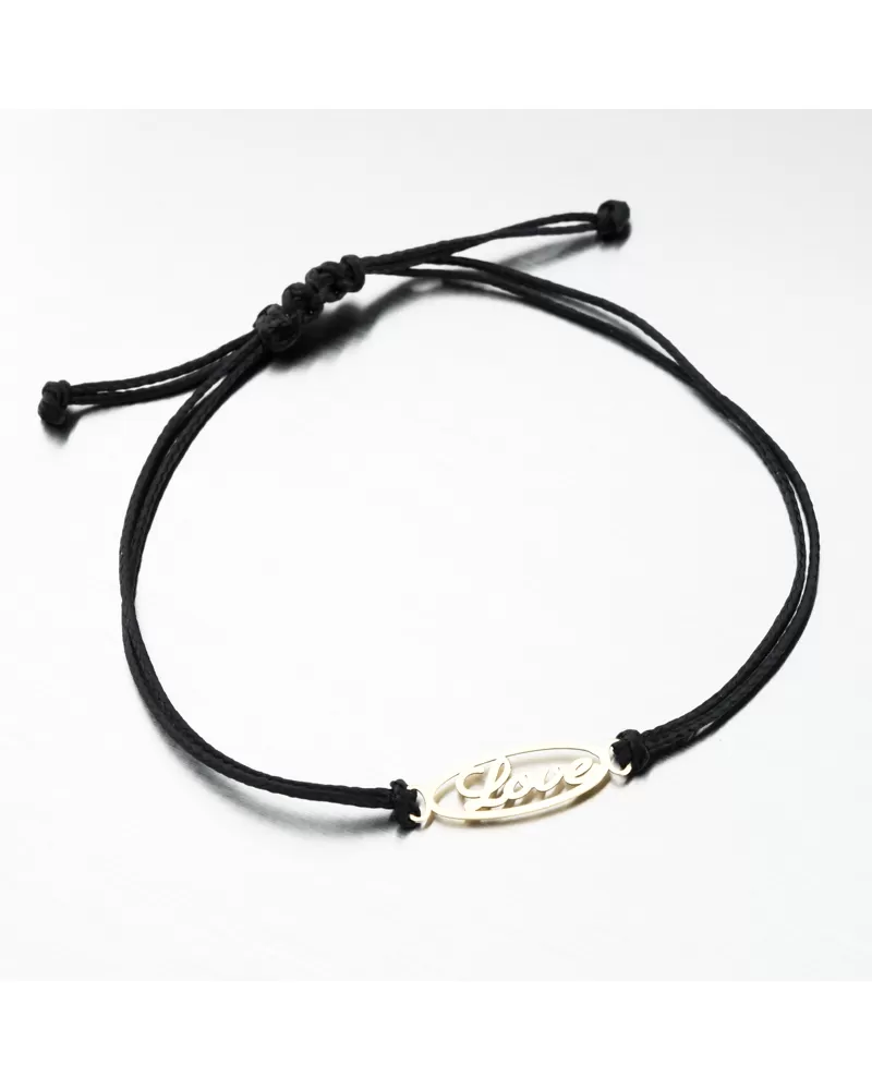 Veľmi obľúbený typ povrázkového náramku, ktorý má výhodu vo svojej univerzálnej veľkosti, obľúbenej čierno-zlatej kombinácii farieb a tiež vhodnosti pre obe pohlavia. Náramok je tvorený z čierneho dvojitého povrázku, ktorý je ozdobený vo svojom strede nápisom Love zo žltého zlata. Tento nápis znamená láska a bude tak ideálnym darčekom pre Vašu drahú polovičku.