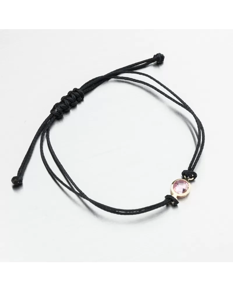 Objavte šnúrkový náramok so zlatým príveskom - ručne vyrobený šperk, ktorý spája štýl, symboliku a luxus v jednom. Veľmi obľúbený typ šnúrkového náramku, ktorého výhodou je univerzálna veľkosť a obľúbená čierno-zlatá farebná kombinácia. Náramok je vyrobený z čiernej dvojitej šnúrky, ktorú v samom strede zdobí prívesok zo žltého zlata. Centrálny prívesok zdobí precízne vybrúsený ružový zirkón, ktorý sa pri každom pohybe krásne leskne a dodáva náramku iskru skutočného luxusu.