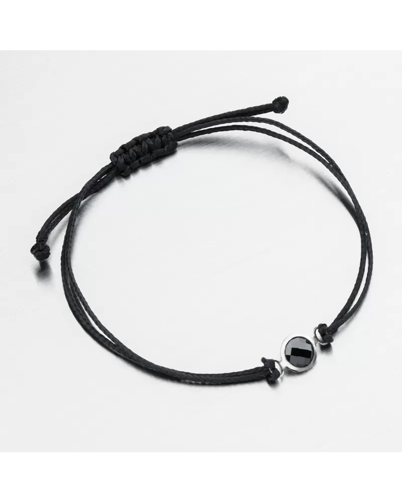 Objavte šnúrkový náramok so zlatým príveskom - ručne vyrobený šperk, ktorý spája štýl, symboliku a luxus v jednom. Veľmi obľúbený typ šnúrkového náramku, ktorého výhodou je univerzálna veľkosť a obľúbená čierno-biela farebná kombinácia. Náramok je vyrobený z čiernej dvojitej šnúrky, ktorú v samom strede zdobí prívesok z bieleho zlata. Centrálny prívesok zdobí precízne vybrúsený čierny zirkón, ktorý sa pri každom pohybe nádherne leskne a dodáva náramku iskru skutočného luxusu.