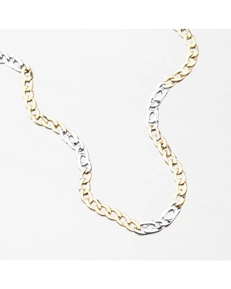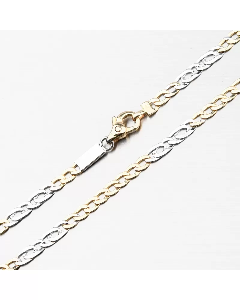 Veľmi obľúbený typ náramku, ktorý je na prvý pohľad unisex. Striedajú sa tu prepletené očká v žltej farbe zlata s dvojitými prepletenými očkami v bielej farbe. Pri tomto náramku sa nemusíte báť, že sa len tak pretrhne. Náramok sa príjemne nosí a je pevný.
