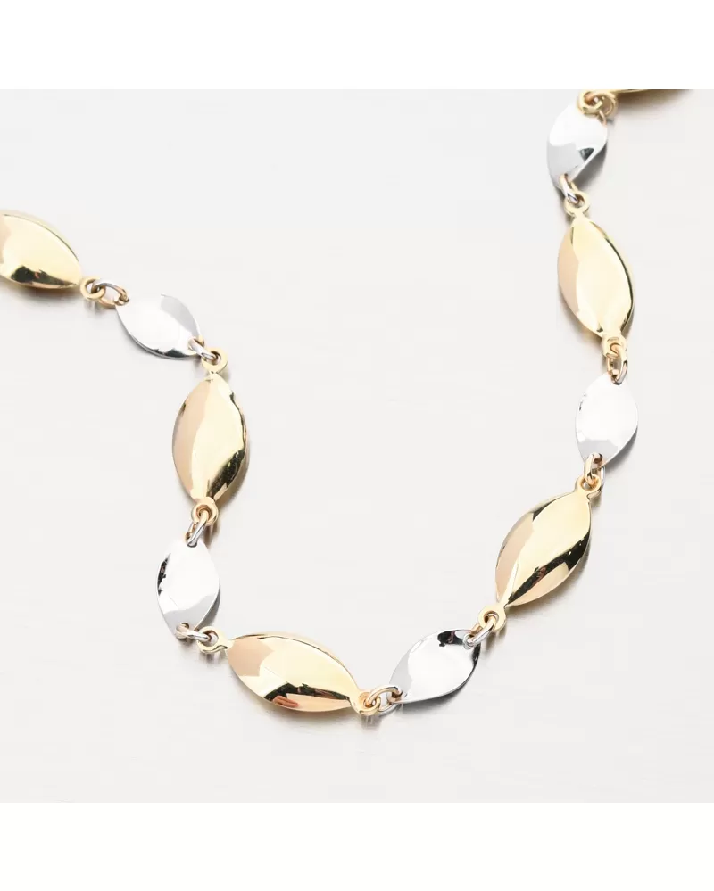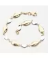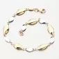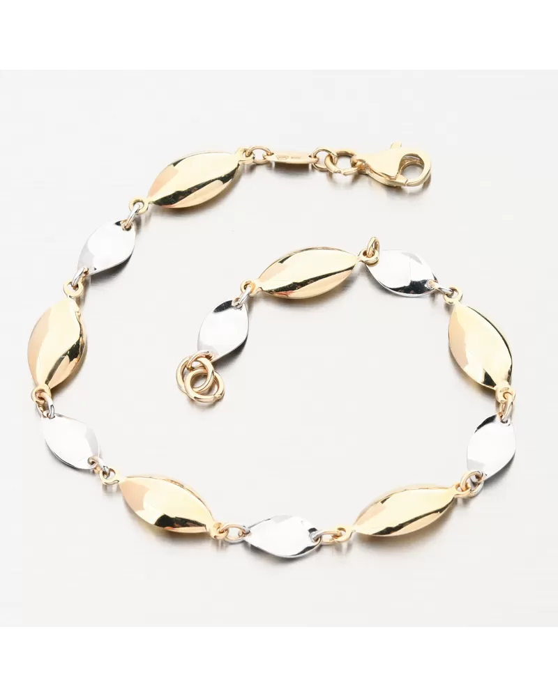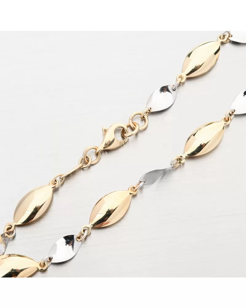 Tento dámsky zlatý náramok bude vhodný nielen pre výnimočnú udalosť, ale aj pre príležitostné opotrebenie. Vyzerá luxusne, je výrazne a dokonale vylepšuje každú ruku. Náramok strieda úplné oválne ozdoby v žltej farbe zlata so zakrivenými oválnymi ozdobami v bielom zlate. Pripevnenie náramku je na pevnom karabíne.