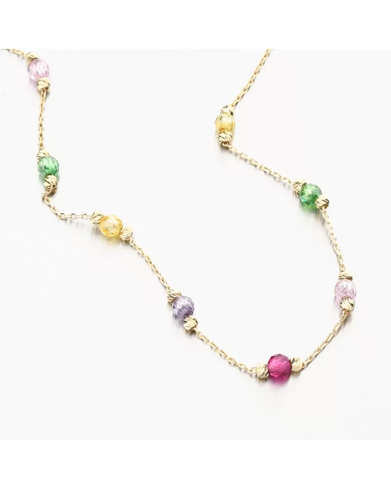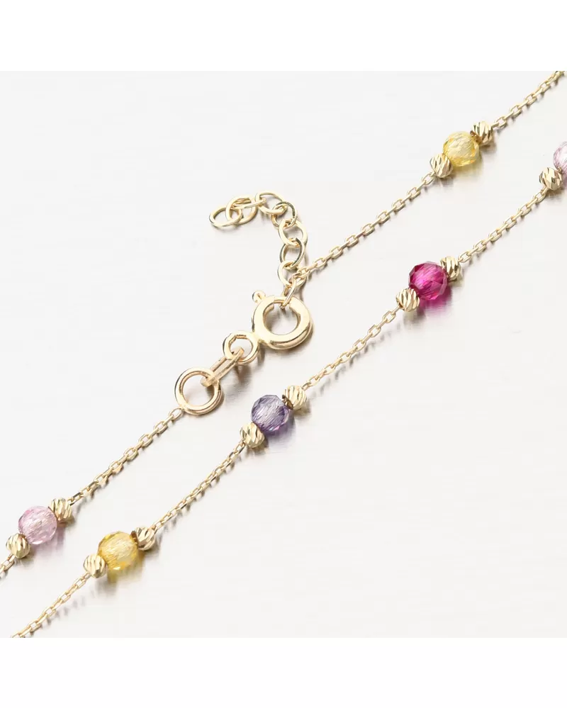Tento zlatý náramok vás oslní svojím spracovaním na prvý pohľad. Budete mať záujem o najfarebnejšie zirkóny po celej dĺžke náramku, kde sa striedajú jednotlivé farby. Zirkóny sú rezané a zlaté gule sú zdobené gravírovaním na každej strane. Gravírovanie je pomocou diamantovej špičky, ktorá dáva šperku maximálny lesk a brilanciu zo všetkých uhlov. Určite urobíte príjemcu spokojnosť s týmto náramkom.