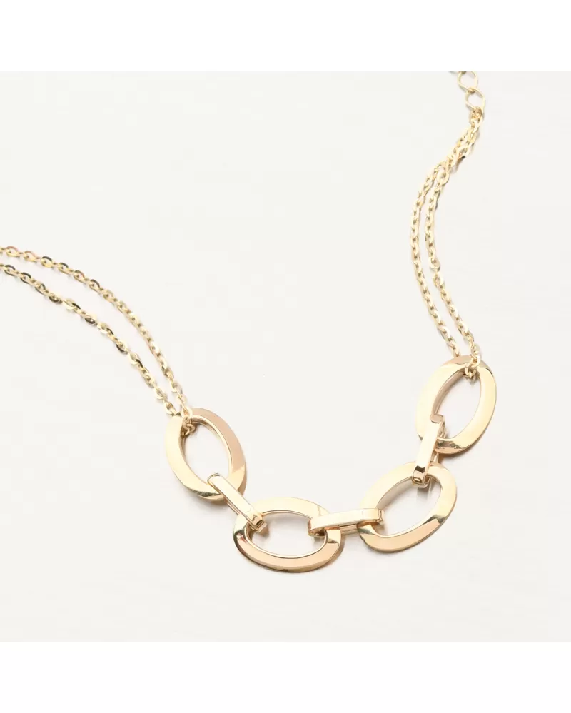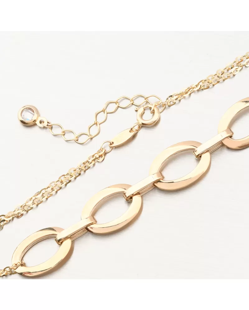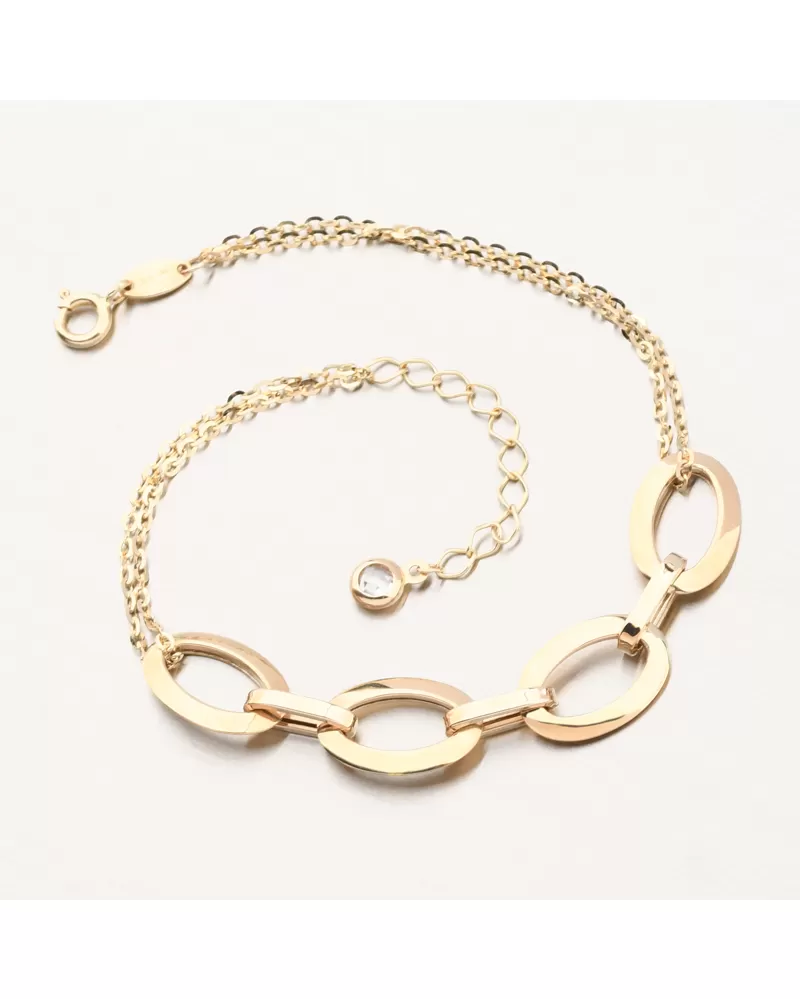 Výrazný zlatý náramok tvorenie z dvojitej retiazky typu Anker, ktorá má v samotnom strede väčšie oválne dieliky. Dvojitá retiazka zaistí viditeľnosť náramku a ozdoba náramku je tvorená oválnymi dielikmi prepojené pomocou spojovacích menších dielikov. Výsledný efekt náramku je božský.