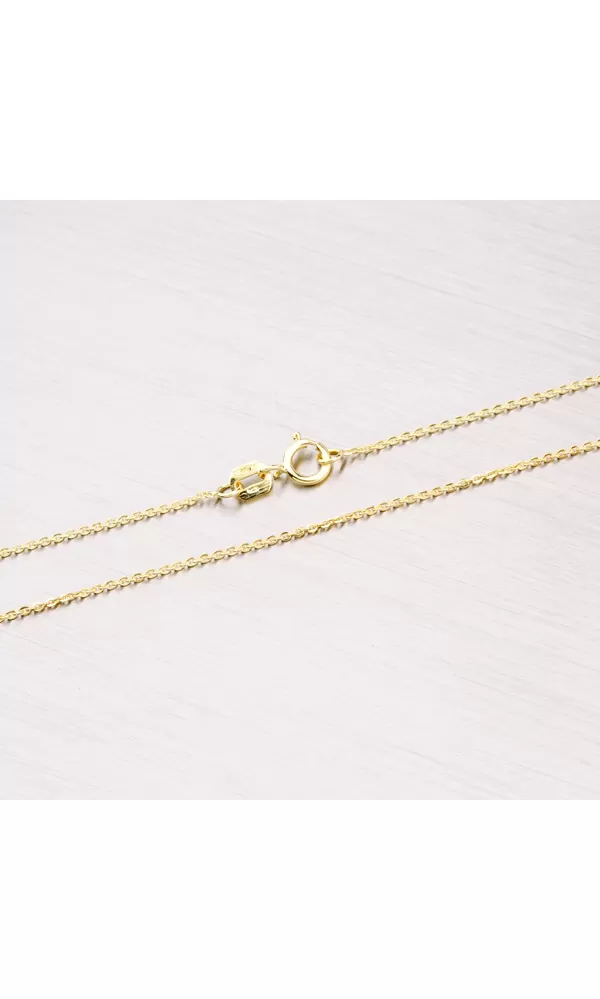 Elegantný a jemný zlatý náramok známeho vzoru Anker so zapínaním na perový krúžok. Tento náramok je vyrobený zo žltého štrnásťkarátového zlata 585/1000. Náramok tvorí striedajúce sa okrúhle očká, ktoré sa radia kolmo k sebe. Očká sú vo vysokom lesku. Šírka očiek je 1 mm, dĺžku náramku si vyberte podľa dostupných rozmerov.