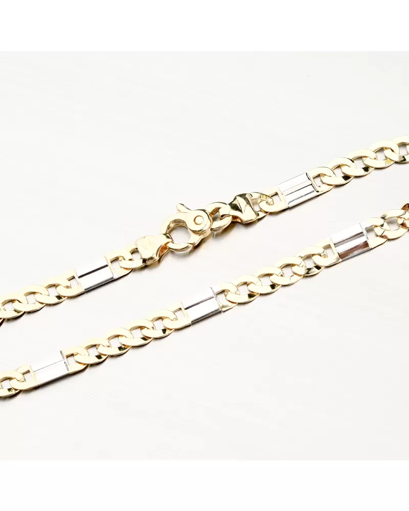 Náramok je vyrobený zo štrnásťkarátového zlata - 585/1000 v bielej a žltej farbe av lesklej povrchovej úprave. Tento šperk bol skontrolovaný puncovým úradom, ktorý overil jeho kvalitu a označil štátnym puncom pre danú rýdzosť.