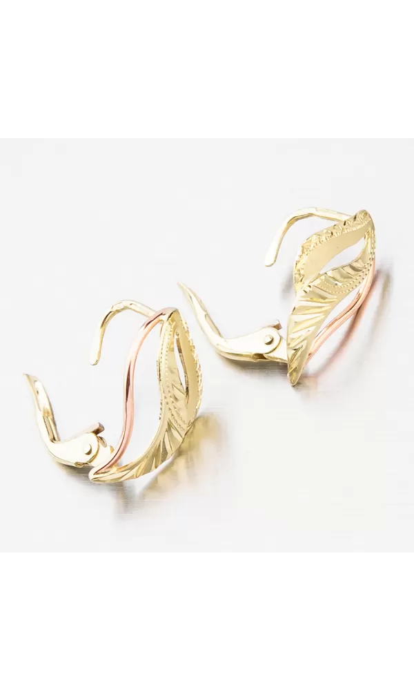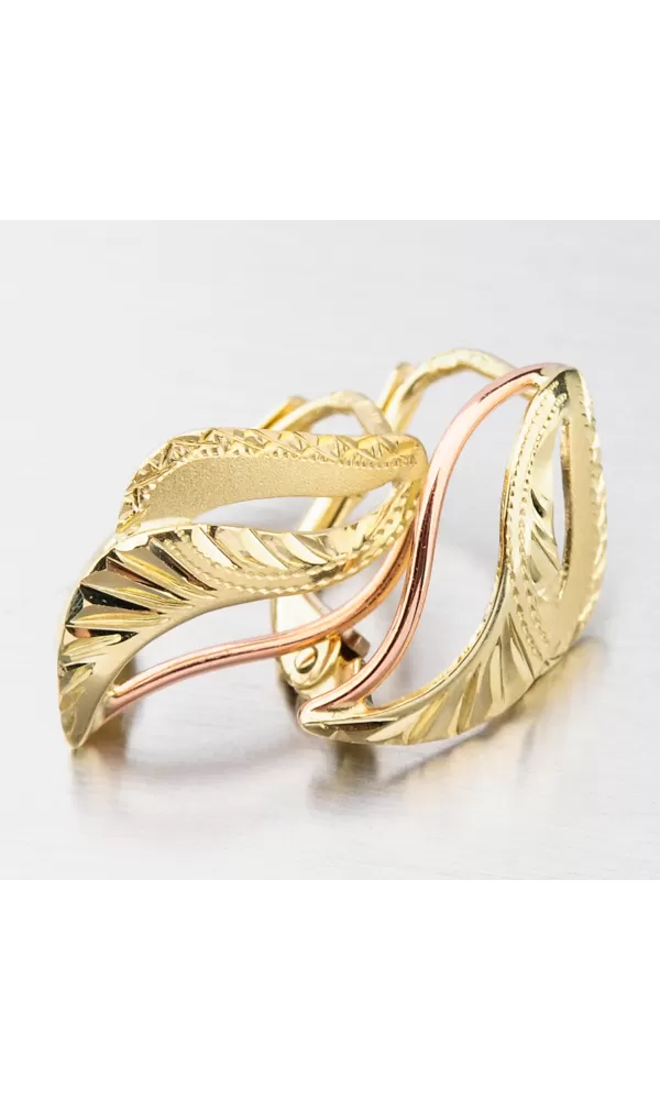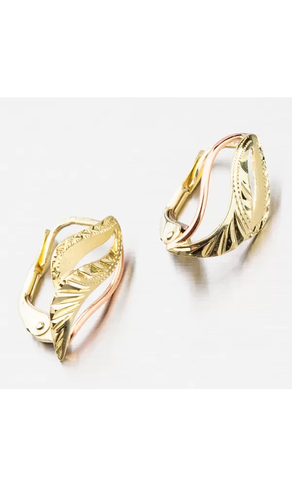 Klasické dámske náušnice sú vyrobené tradičnou klenotníckou technikou v kombinácii žltého a červeného štrnásťtikarátového zlata 585/1000 v lesklej povrchovej úprave. Náušnice sa zapínajú na klapky.