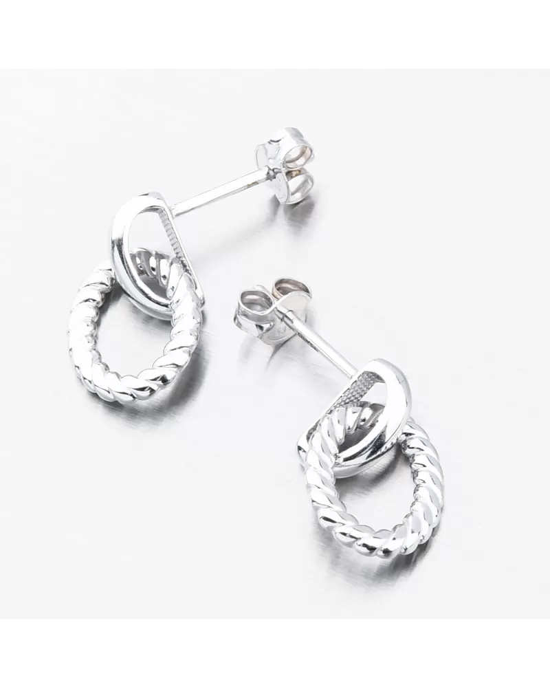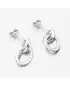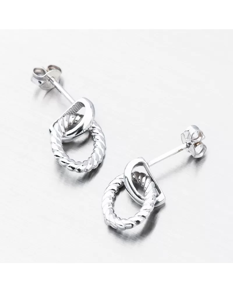 Originálny dizajn dámskych náušníc z bieleho zlata zlata je tvorený z dvoch spojených častí. Spodný oválny kruh je zdobený vrúbkovaným povrchom a visí na hornom polkruhu pri zapínaní.
