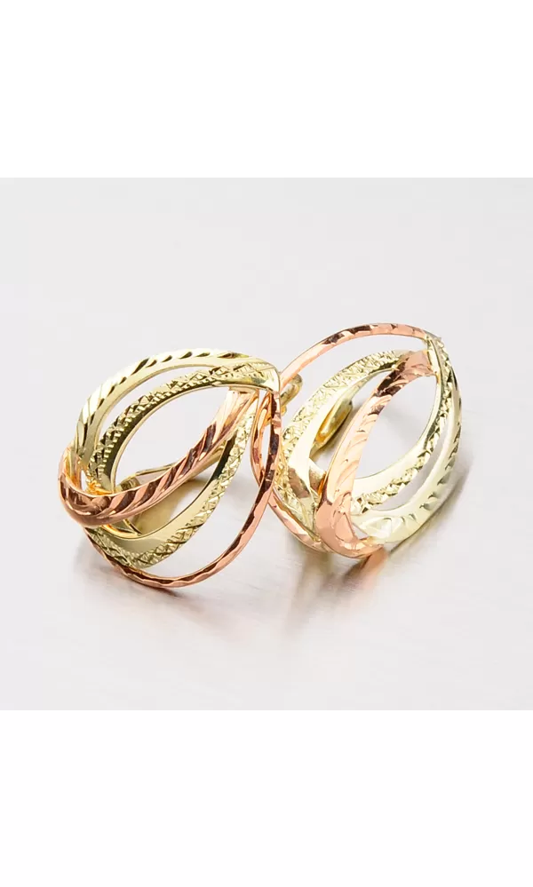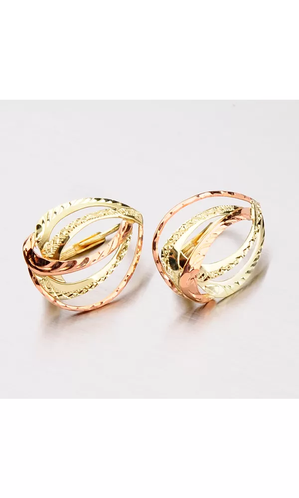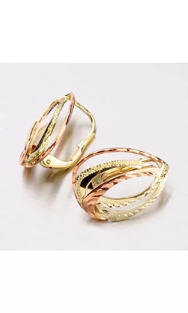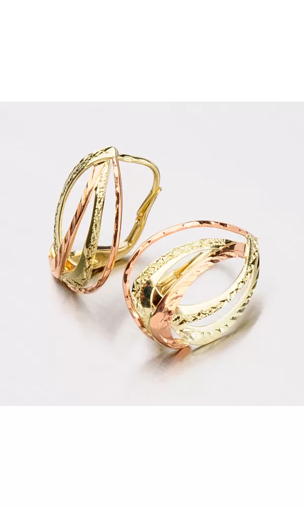 Klasické dámske náušnice sú vyrobené tradičnou klenotníckou technikou v kombinácii žltého a červeného štrnásťtikarátového zlata 585/1000 v lesklej… Celý popis