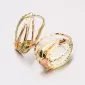 Klasické dámske náušnice sú vyrobené tradičnou klenotníckou technikou v kombinácii žltého a červeného štrnásťtikarátového zlata 585/1000 v lesklej povrchovej úprave a sú bohato zdobené ručným rytím. Náušnice sa zapínajú na klapky.