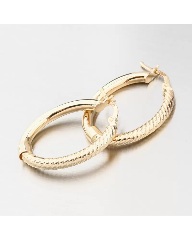 Tieto náušnice sú vyrobené zo žltého štrnásťkarátového zlata 585/1000 v lesklej povrchovej úprave. Náušnice boli skontrolované puncovým úradom, ktorý overil ich kvalitu a označil štátnym puncom pre danú rýdzosť.