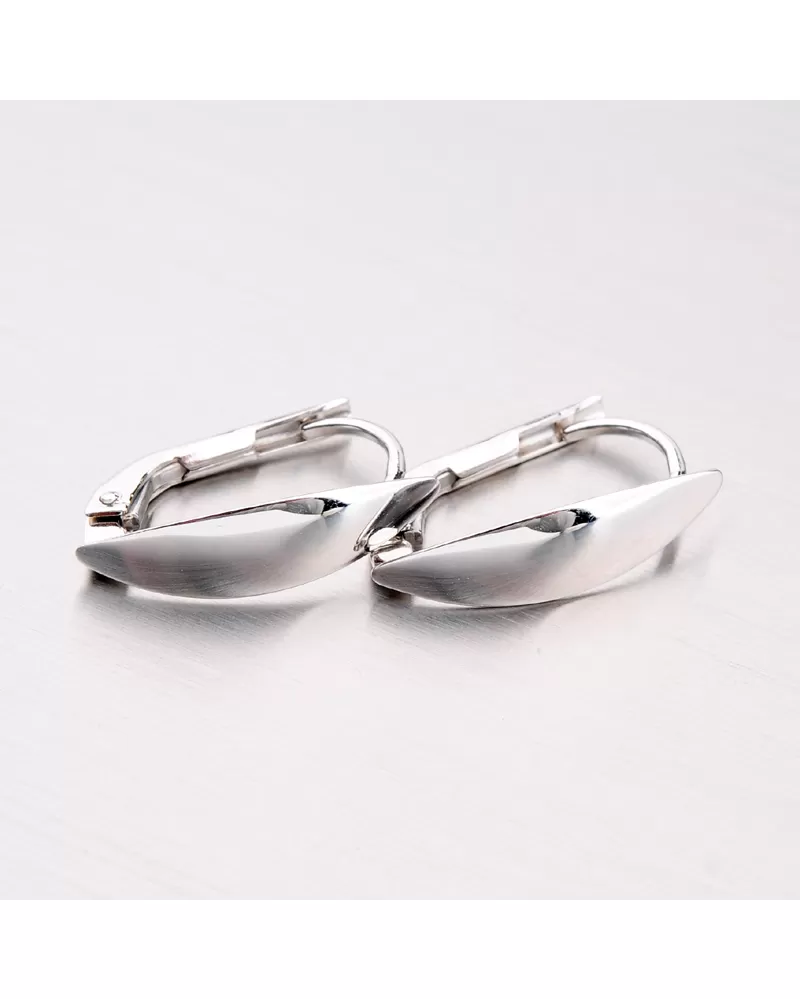 Mäkké a veľmi elegantné náušnice sa môžu použiť čo najviac. Ich nenásilný dizajn je hodný každodenného nosenia. Náušnice pozostávajú z prednej dekorácie v tvare mandle, ktorá je leštená na vysoký lesk. Náušnice sú vyrobené z bieleho zlata s čistotou 585/1000 v lesklom povrchu. Náušnice sú pripevnené k klapke.