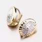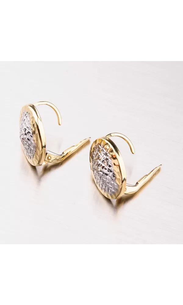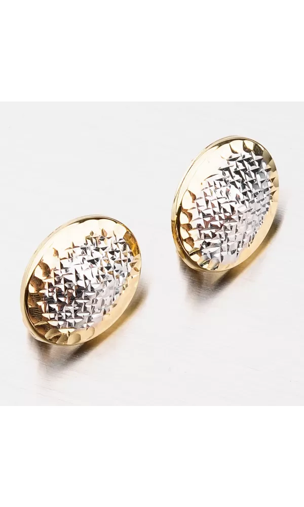 Opravdu nepřehlédnutelné náušnice jsou vyrobeny ze žlutého zlata v ryzosti 585/1000 v lesklé povrchové úpravě. Náušnice jsou kulatého tvaru a jsou lehce vypouklé. Tento tvar jim dodává při pohybu odlesky, které jsou zvýrazněny gravírováním a bílou barvou zlata. Náušnice se zapínají na klapku.